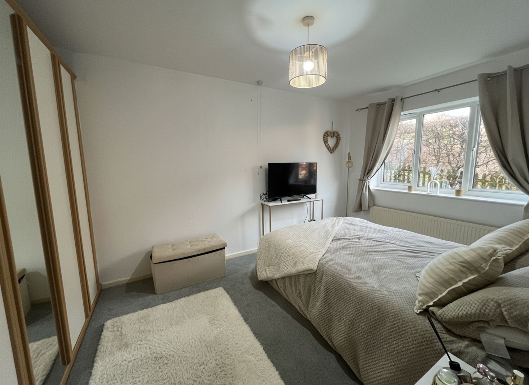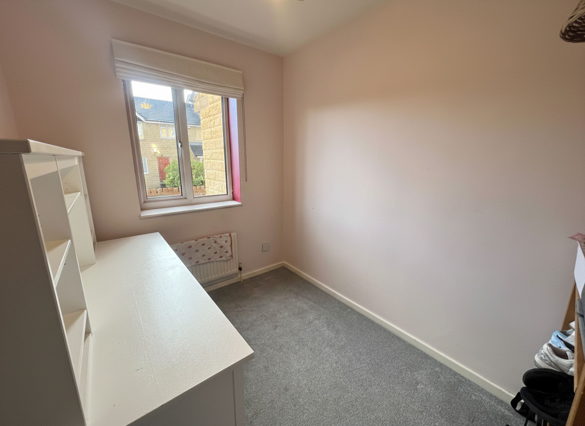 Bedroom two is a multipurpose space that could be utilised as a single bedroom, home office, or nursery. It features a bank of double-glazed windows to the front elevation, providing the room with a great deal of natural light, along with a central ceiling light point and a radiator.
