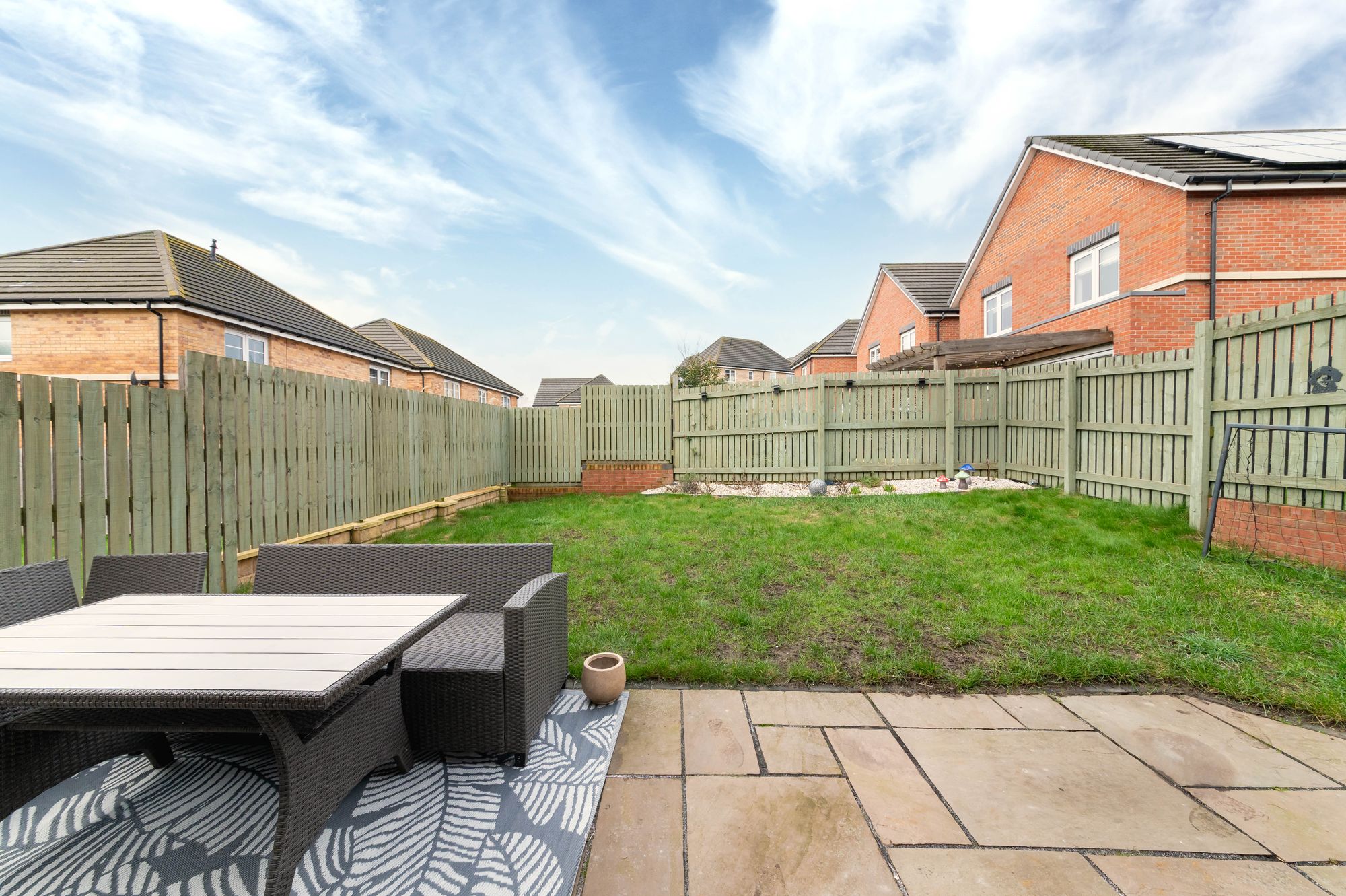 A doorway leads through to the lounge. This is a particularly attractive room. The lounge is decorated to a high standard and has a window overlooking the property’s enclosed rear gardens. There is provisions for a wall mounted TV and, once again, attractive flooring throughout.