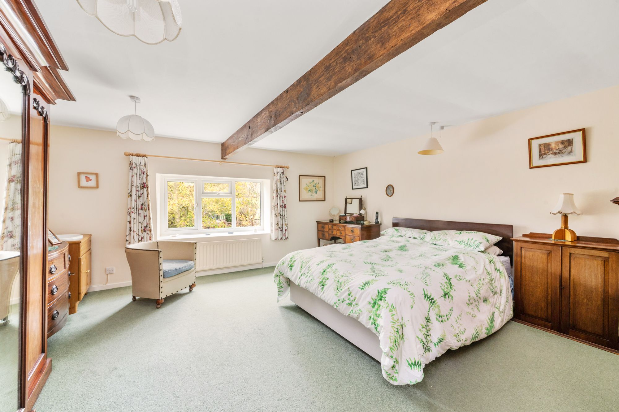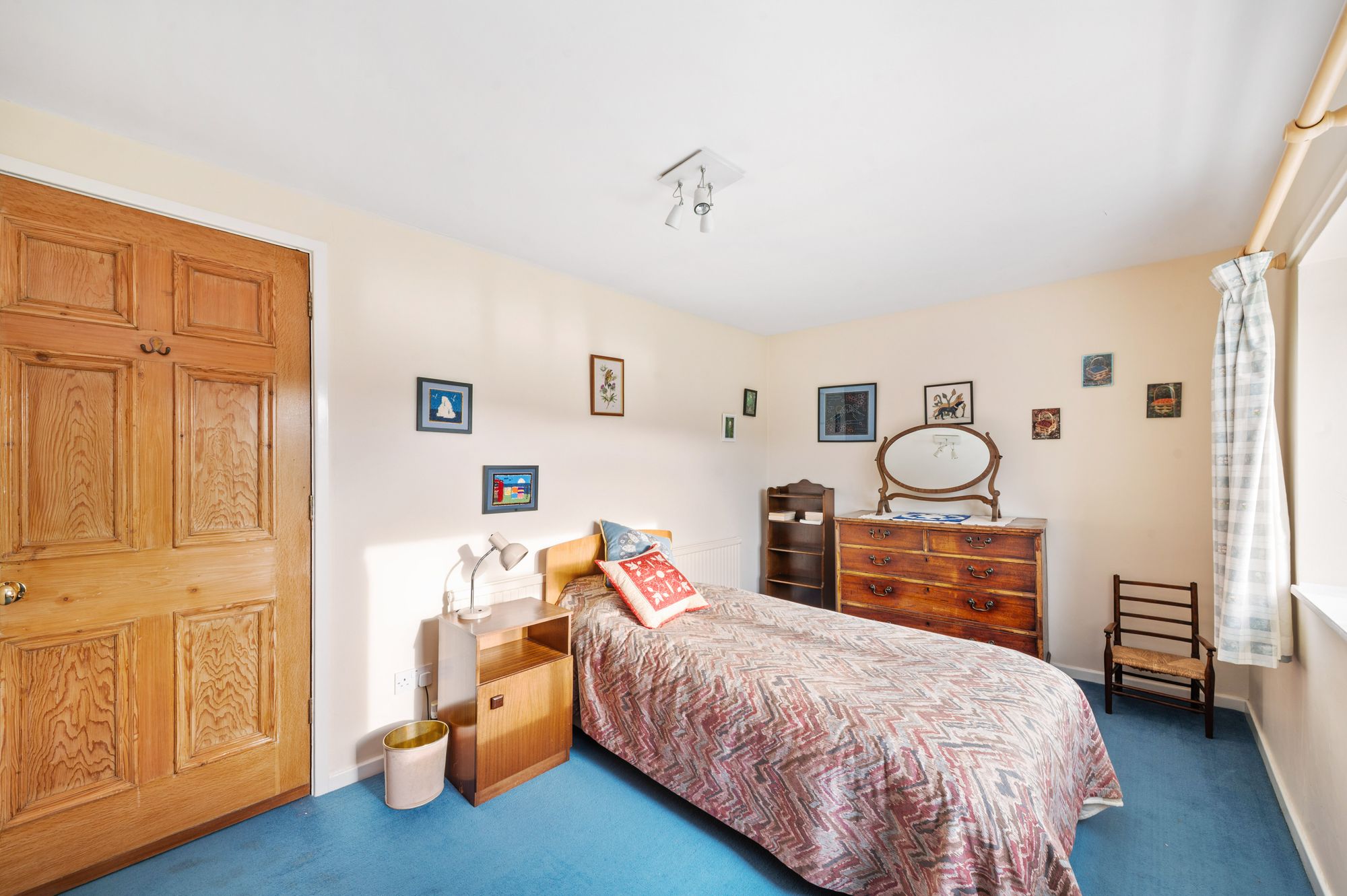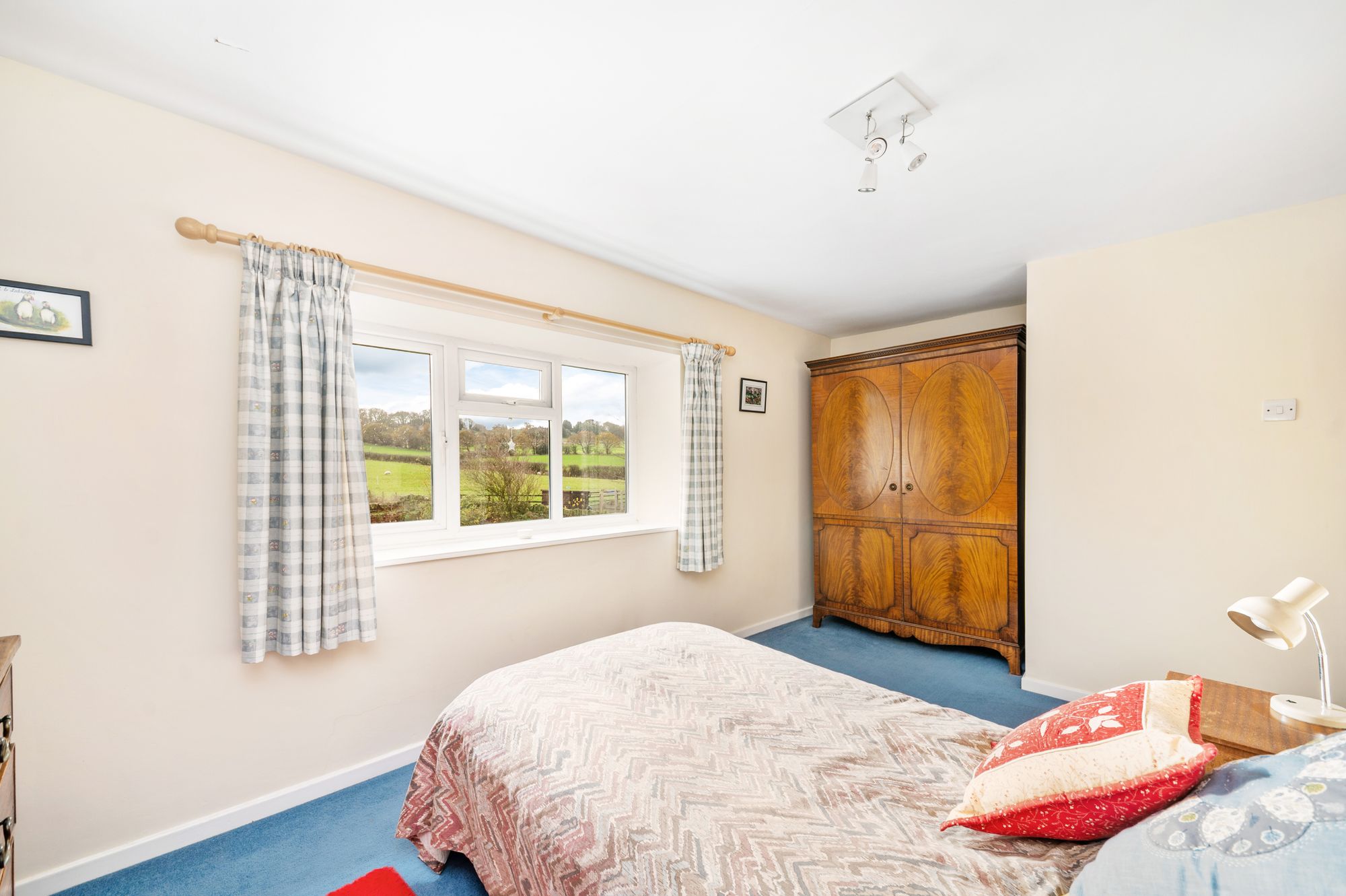 Bedroom three is situated to the front of the property and features a double-glazed bank of windows to the front elevation, offering pleasant views. There is an exposed timber beam on display, a radiator, two ceiling light points, a reading light point, and a door enclosing a useful fitted wardrobe with hanging rail in situ.