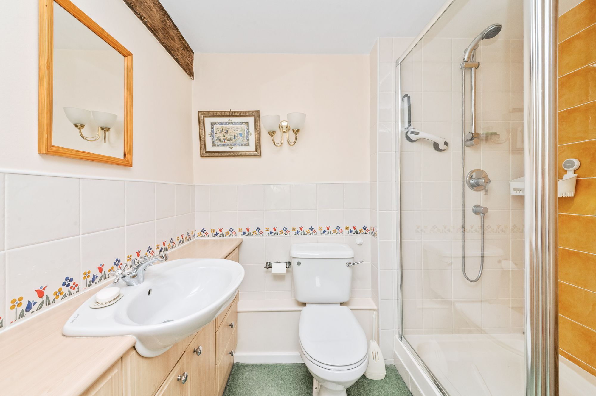 Bedroom one is situated to the front of the property and is a generously proportioned double bedroom with ample space for freestanding furniture. There is a fabulous, exposed timber beam on display, three ceiling light points, a shaver point with shaver light, a radiator, a bank of double-glazed windows to the front elevation, and a wash hand basin inset into a vanity unit.