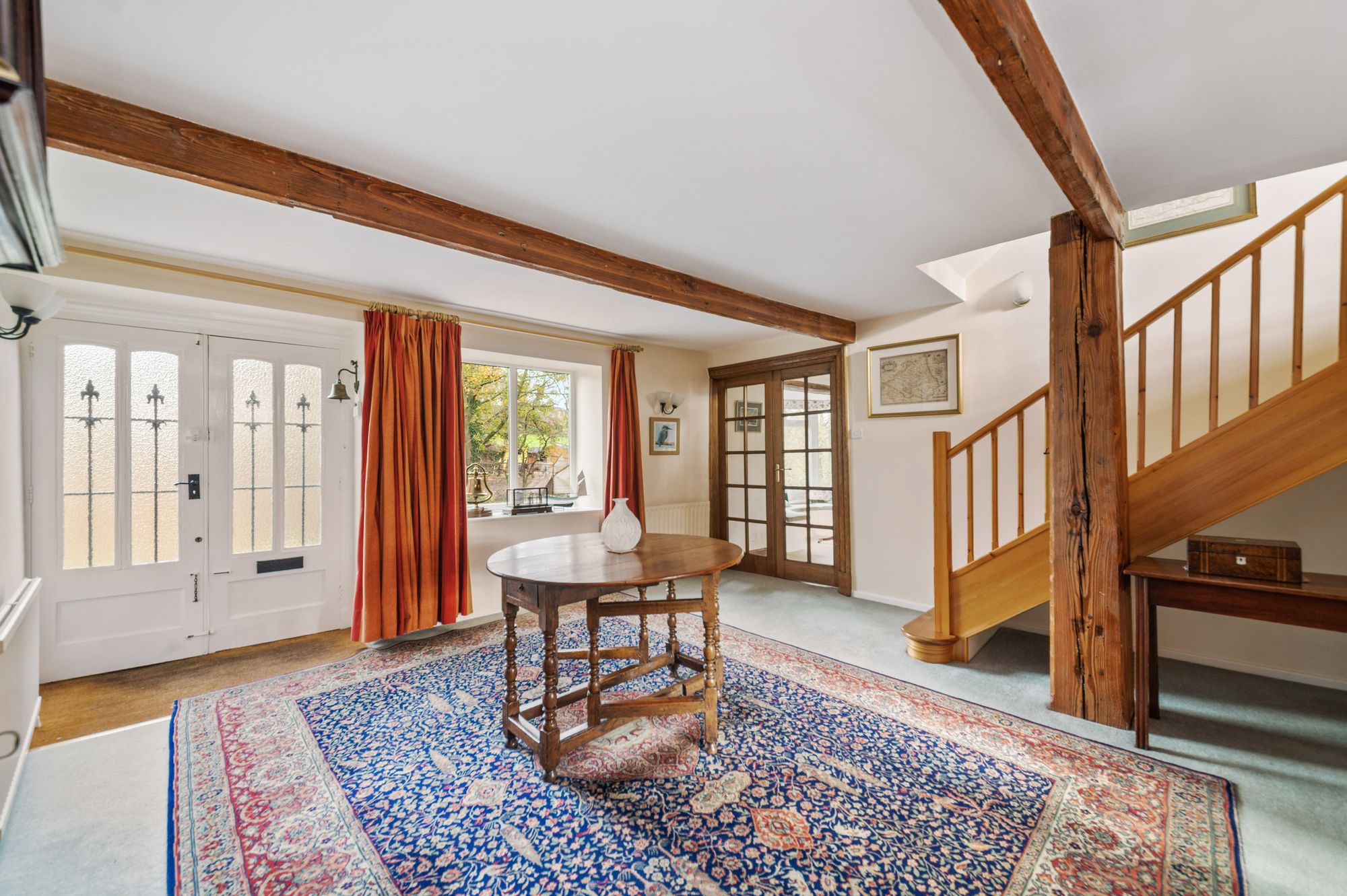 Enter into the property through twin timber and glazed front doors with double-glazed obscure inserts. The reception hall features exposed timber beams and batons on display, a bank of double-glazed windows to the front elevation providing a fabulous open outlook across fields, multi-panel timber and glazed doors providing access to the lounge and formal dining room, and solid timber doors giving access to the ground floor WC and the second reception room. There are three wall light points, two radiators, and a staircase with wooden banister and chamfered spindle balustrade rising to the first floor.