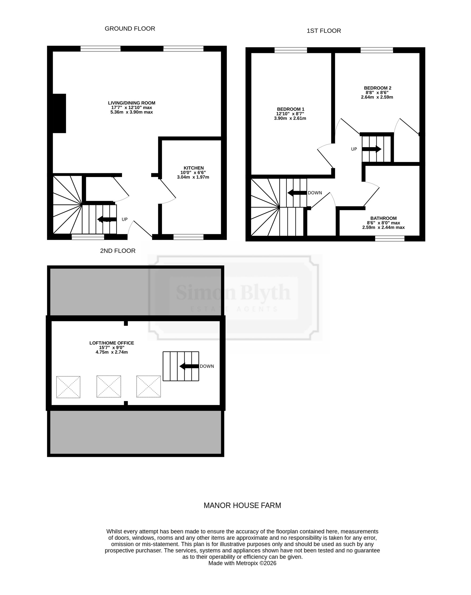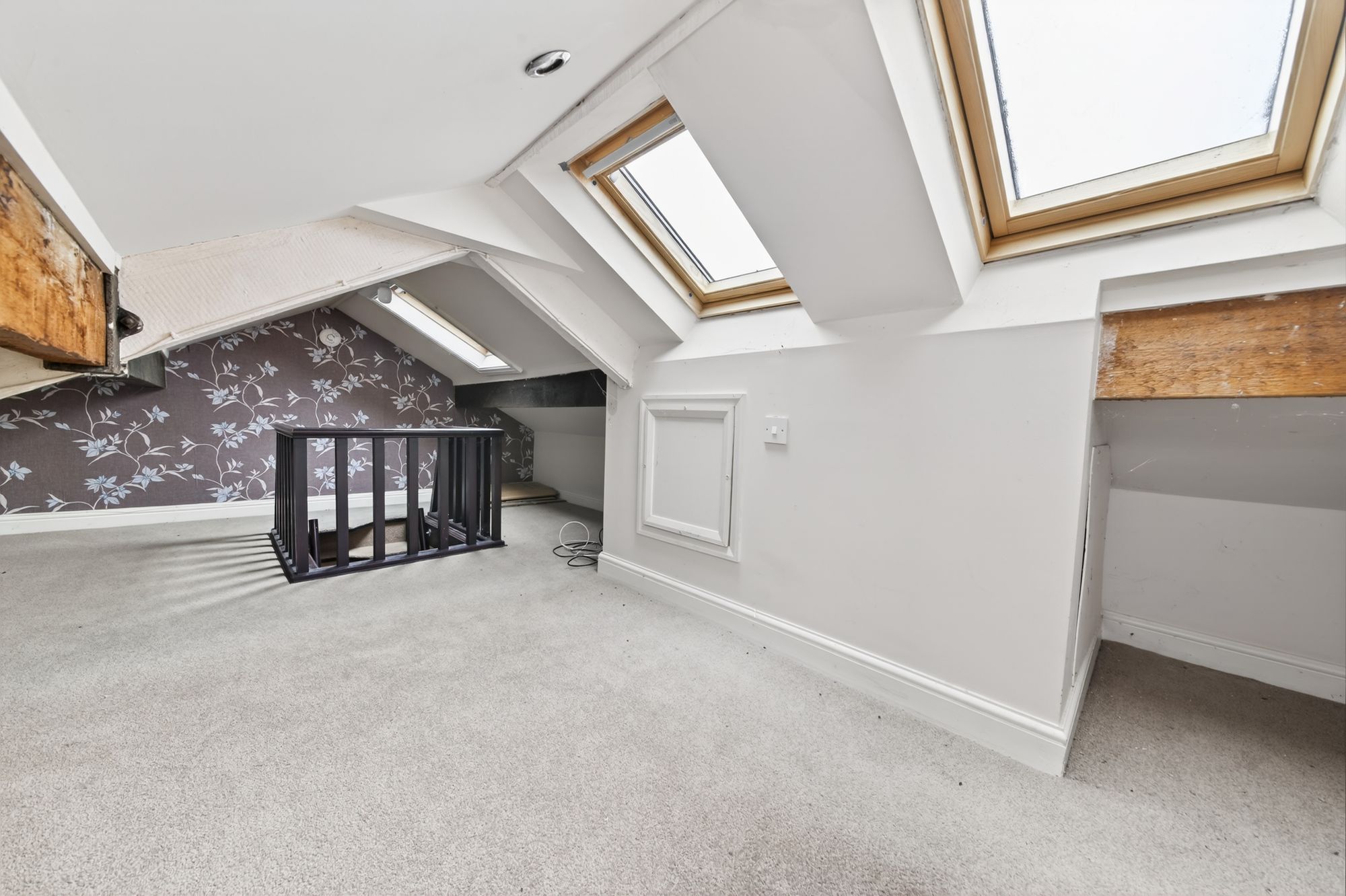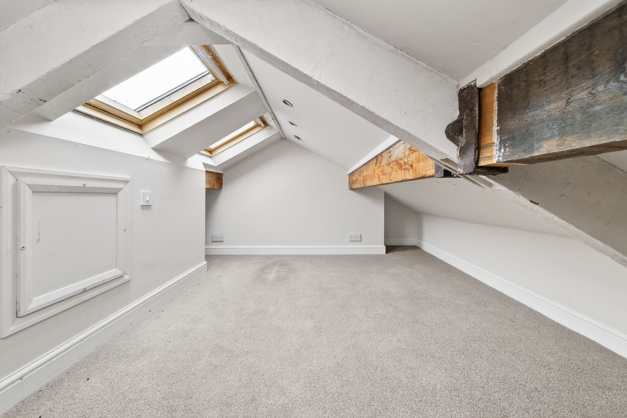 A ladder-style staircase rises to the loft. This, as the floorplan indicates, has good floor space. It has limited head height, three Velux-style windows, beams on display and balustrading around the ladder/staircase opening. This area, we understand, has been used as a home office/study space.