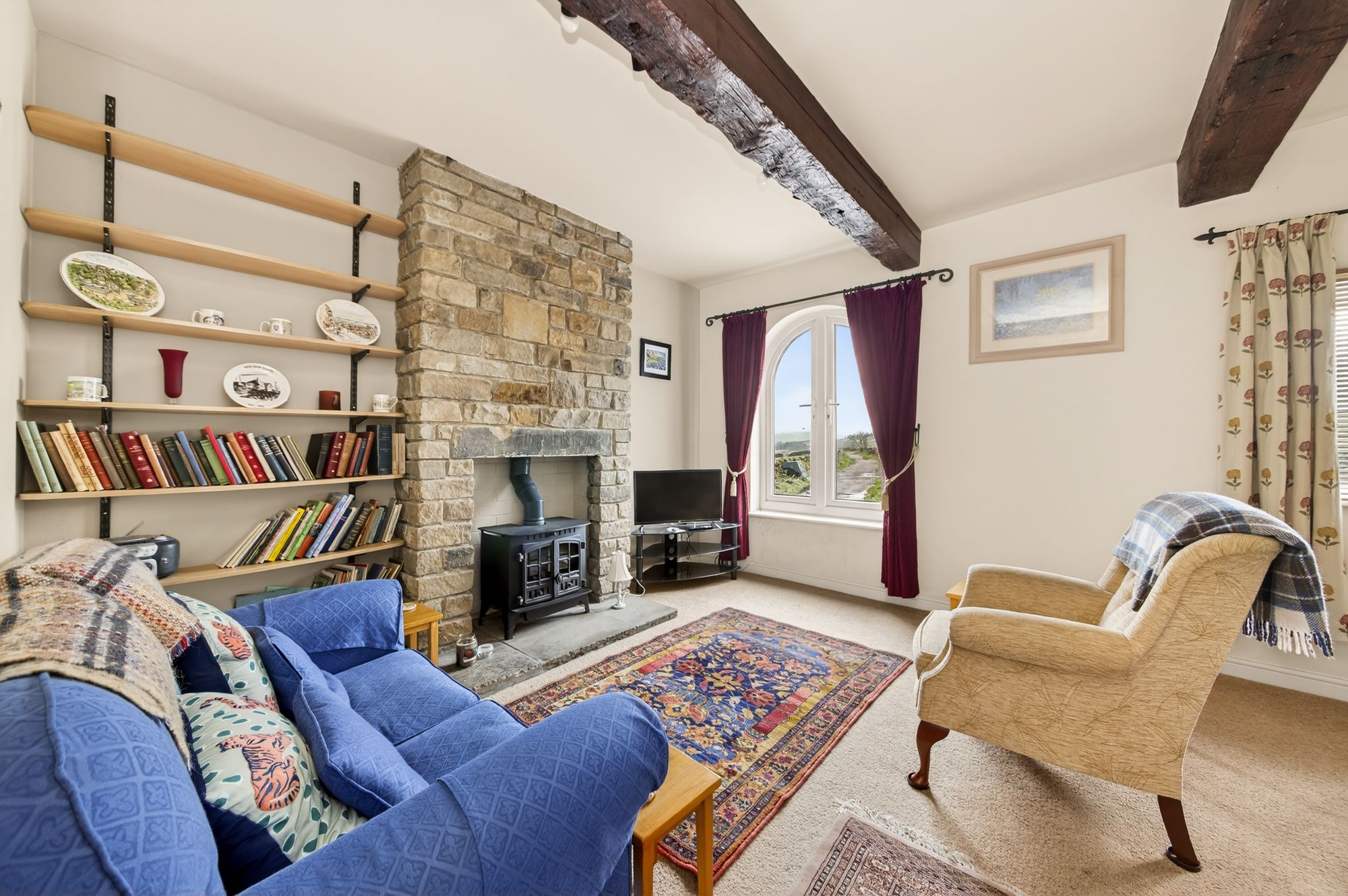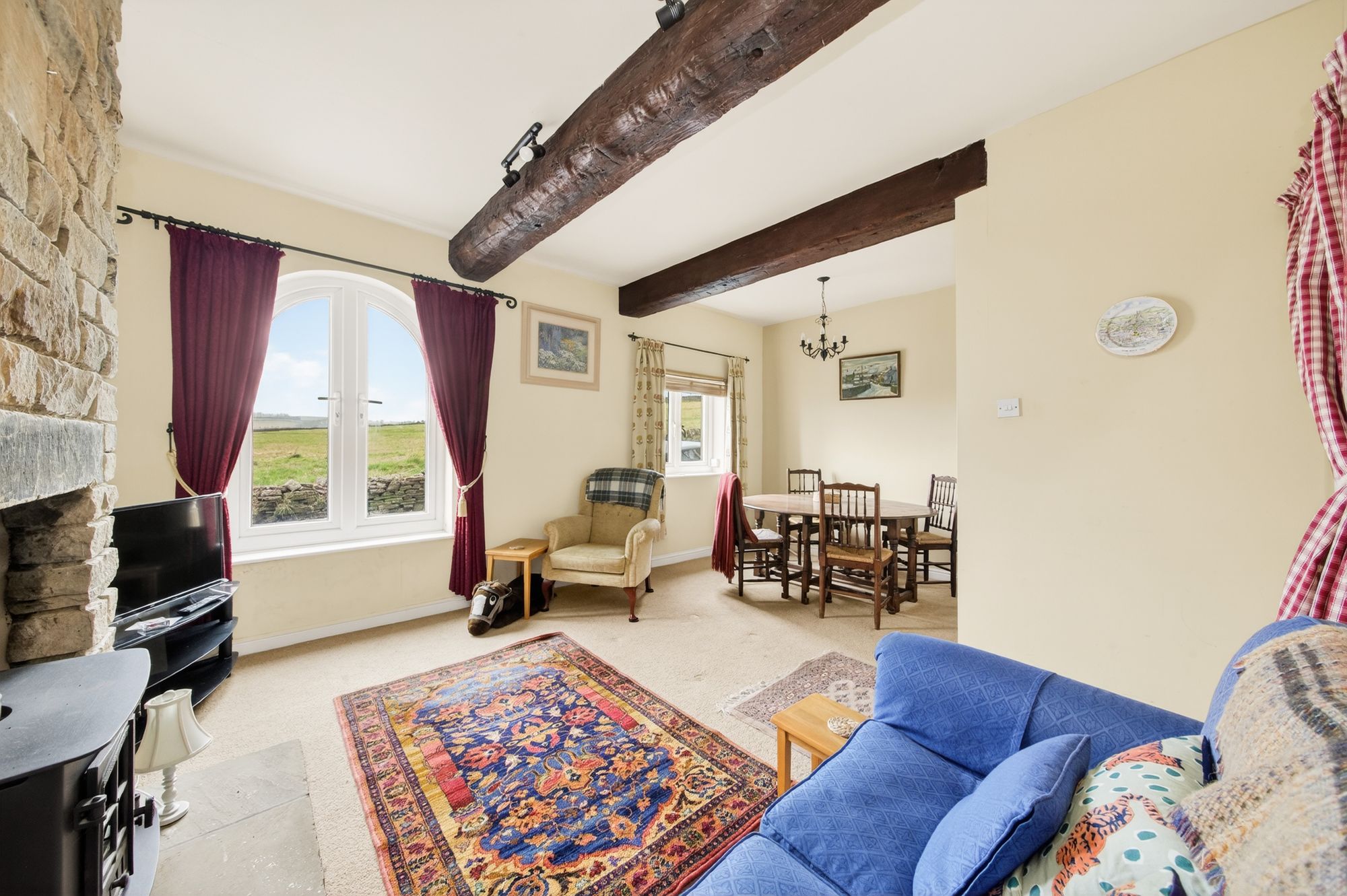 As the photography suggests, the Family Room is decorated to a high standard and features a bank of double-glazed windows to the front elevation, taking full advantage of the elevated position of the property with fabulous open-aspect views across the valley. There is a ceiling light point and radiator and a doorway that proceeds into the kitchen. The focal point of the room is the decorative, inset into the chimney breast with stone hearth.