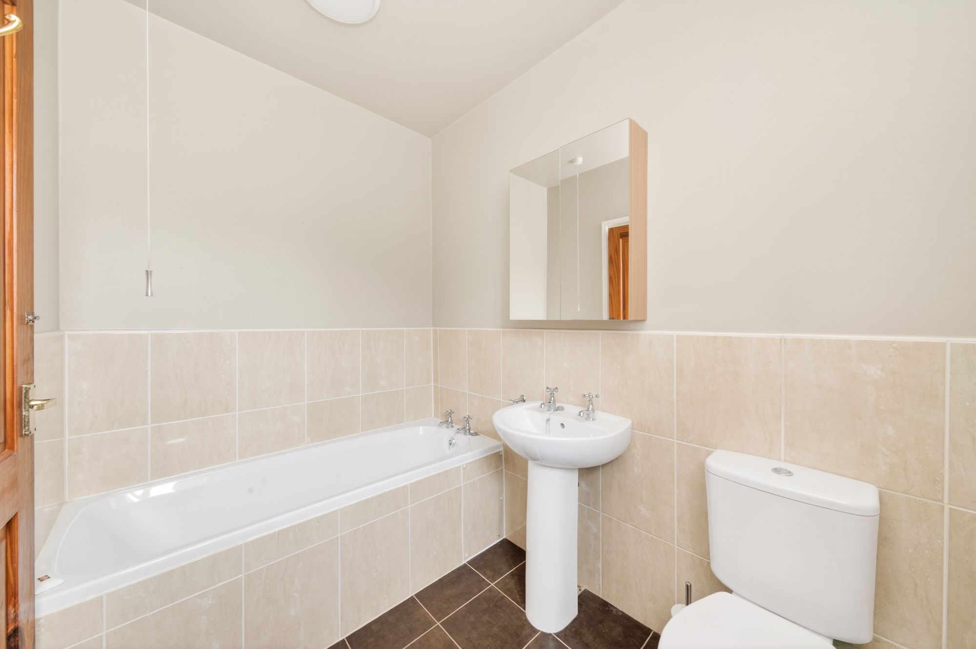 The property’s bathroom is fitted with a four-piece suite in white that comprises of bath, pedestal wash handbasin, low-level WC and shower. The shower is fitted with chrome fittings. There is a chrome central heating radiator/heated towel rail, ceramic tiling to the floor and to the half-height and to the full ceiling height in the shower area, two ceiling light points and obscure-glazed window.