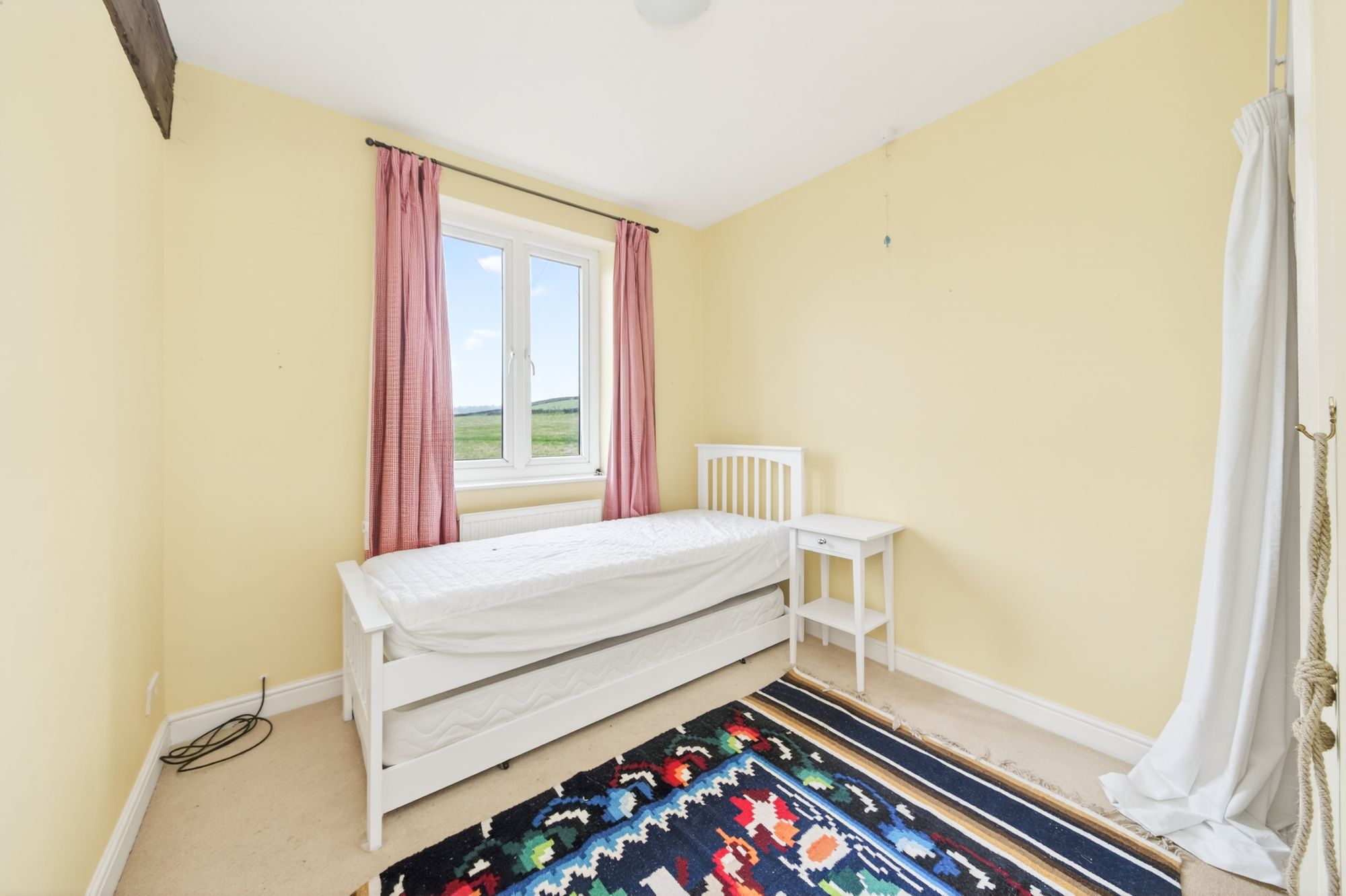 Once again, a pleasant room of a good size with a lovely, long-distance view, courtesy of a large window. The room has a beam on display and a good-sized walk-in wardrobe with hanging rails and shelving.