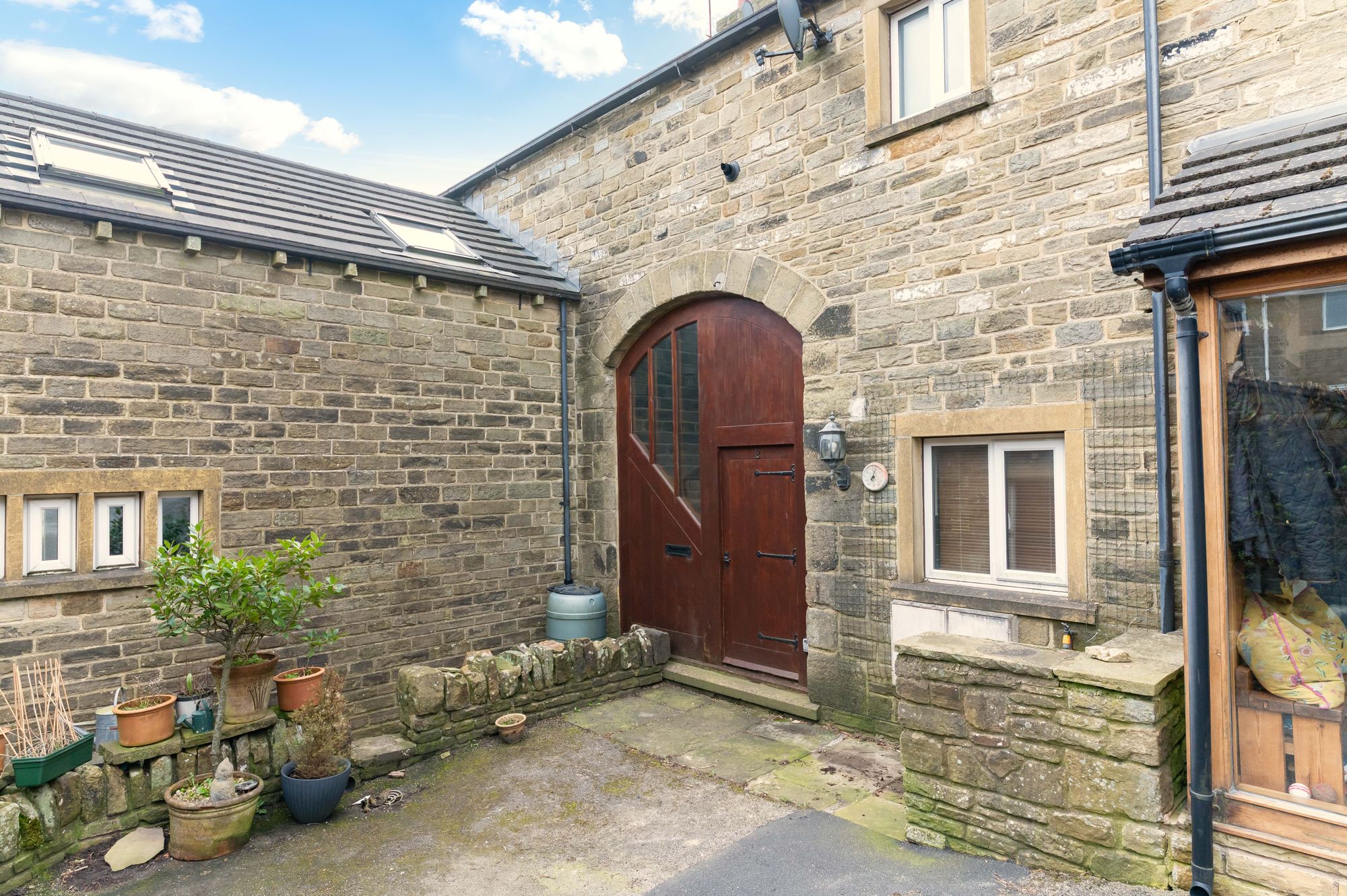 A BEAUTIFULLY POSITIONED, TWO BEDROOMED COTTAGE WITH HOME OFFICE LOFT SPACE AND WONDERFUL BEAMS AND TIMBERS, THIS BARN CONVERSION IS SET IN A DELIGHTFUL, SMALL COURTYARD AND ENJOYS STUNNING VIEWS. POSITIONED IN THE DESIRABLE VILLAGE OF UPPERTHONG WITH RURAL WALKS IN ABUNDANCE, THIS OFFERS A BEAUTIFUL HOME WITH GAS FIRED CENTRAL HEATING AND DOUBLE GLAZING. It briefly comprises: Entrance hall, lounge with dining area and spectacular views, kitchen, two good-sized bedrooms, bathroom, ladder/staircase to the top floor home office/loft with three Velux-style windows. Externally, there is a small stone-flagged pathway for sitting out space, rare for the village, garage and parking space before it. A home that must be seen to fully understood and appreciated. EPC rating: D Council tax: C Tenure: Freehold