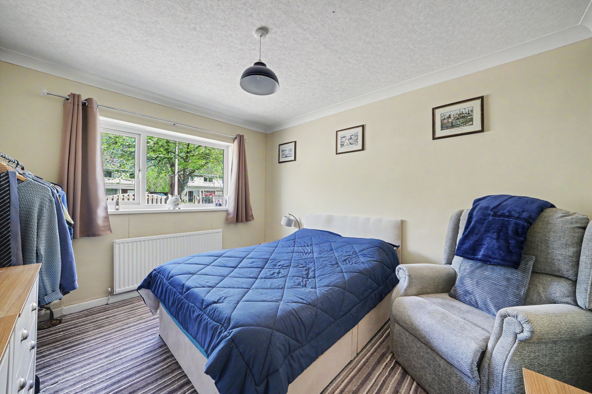 This has a large uPVC double glazed window which looks out over the front garden and provides the room with plenty of natural light. There is a ceiling light point, central heating radiator and chimney breast.