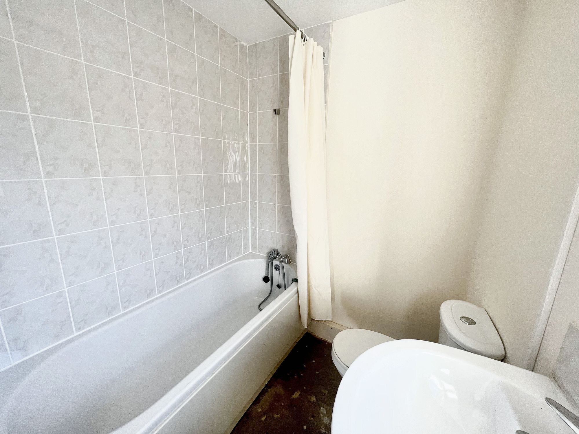 The bathroom features a white three-piece suite which comprises panel bath with shower head mixer tap, a low double w.c. with push button flush and a broad pedestal wash hand basin with chrome mixer tap. There is tiling to the splash areas, a radiator, ceiling light point and extractor fan and a double-glazed window with obscure glass at the rear elevation.