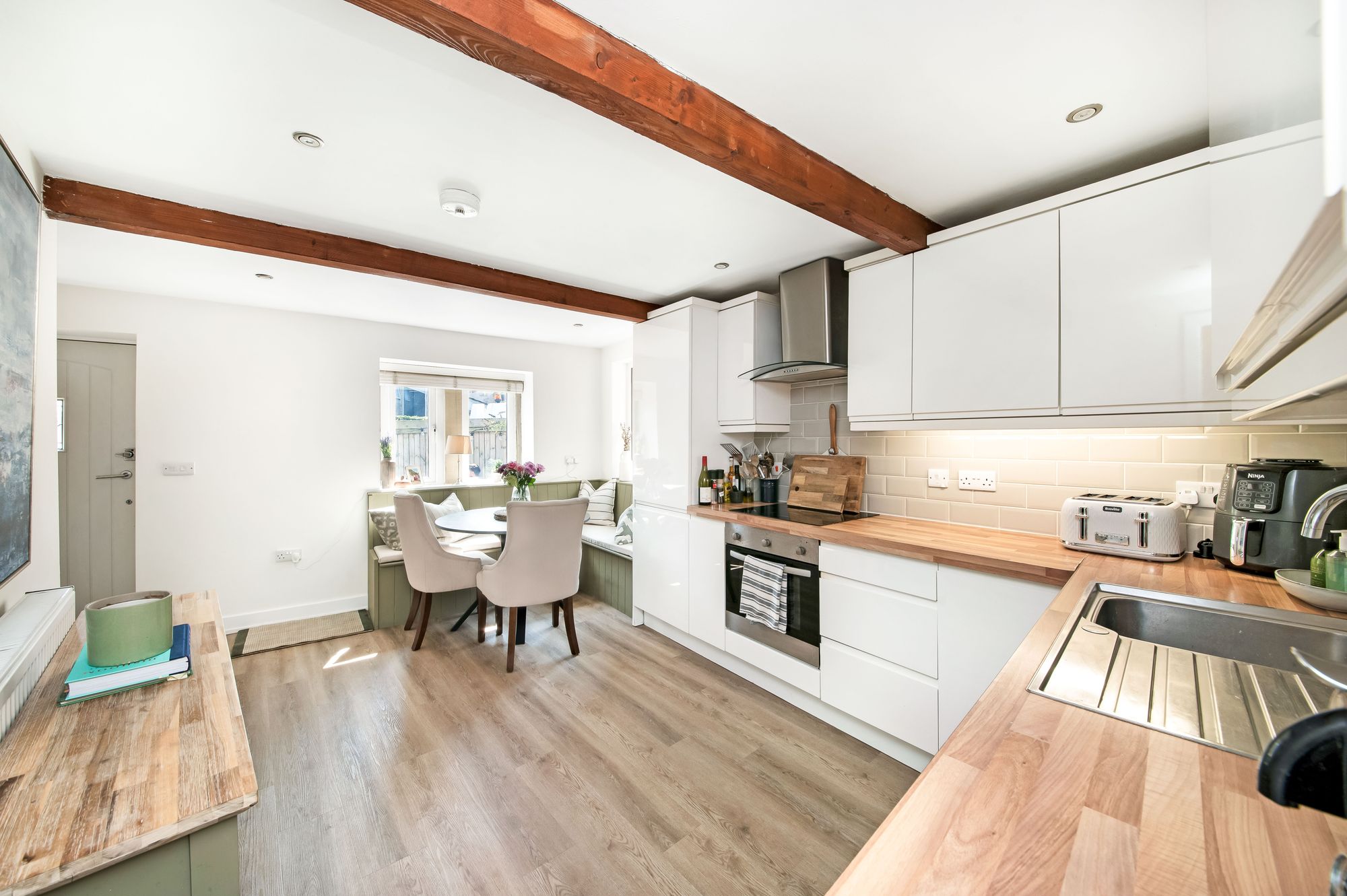 Enter into the property through a beautiful, cottage-style entrance door made of sturdy timber and with attractive door furniture and leaded, obscure glazed porthole. The entrance hall area is of a good size and opens directly and seamlessly through to the property's dining kitchen, as well as steps down to the lounge. A staircase with polished timber handrail and central carpet runner rises the first floor landing.