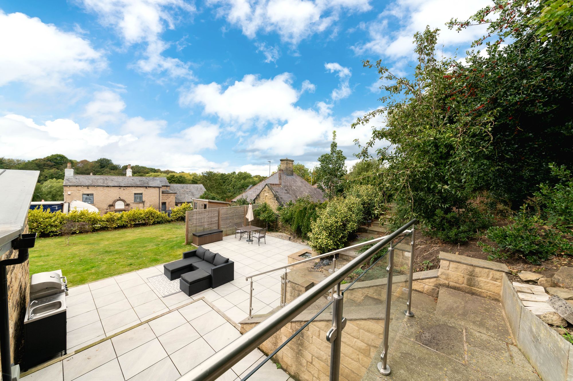 Following from the stone flagged pathway from Barnsley Road to the left-hand side of the property, the lawned garden opens out to a fantastic entertainment space with an impressive, flagged patio which has recessed spotlighting, tree borders and timber privacy panelling. There is a beautiful water feature with stone cascading waterfall and there are external lights, external plug points, and an external tap. The patio area is an ideal space for alfresco dining and BBQing and from here there are bifold doors leading into the dining area and an additional gradual stairwell which leads to a pleasant seating area which arguably has the best views from the property’s grounds with Emely Moor in the distance. There are well-stocked flower and shrub beds, brushed steel handrails with glazed balustrade. The gardens are enclosed and there is a driveway which provides off street parking for multiple vehicles and a further driveway which is accessed off Henry Street which leads to the garage.