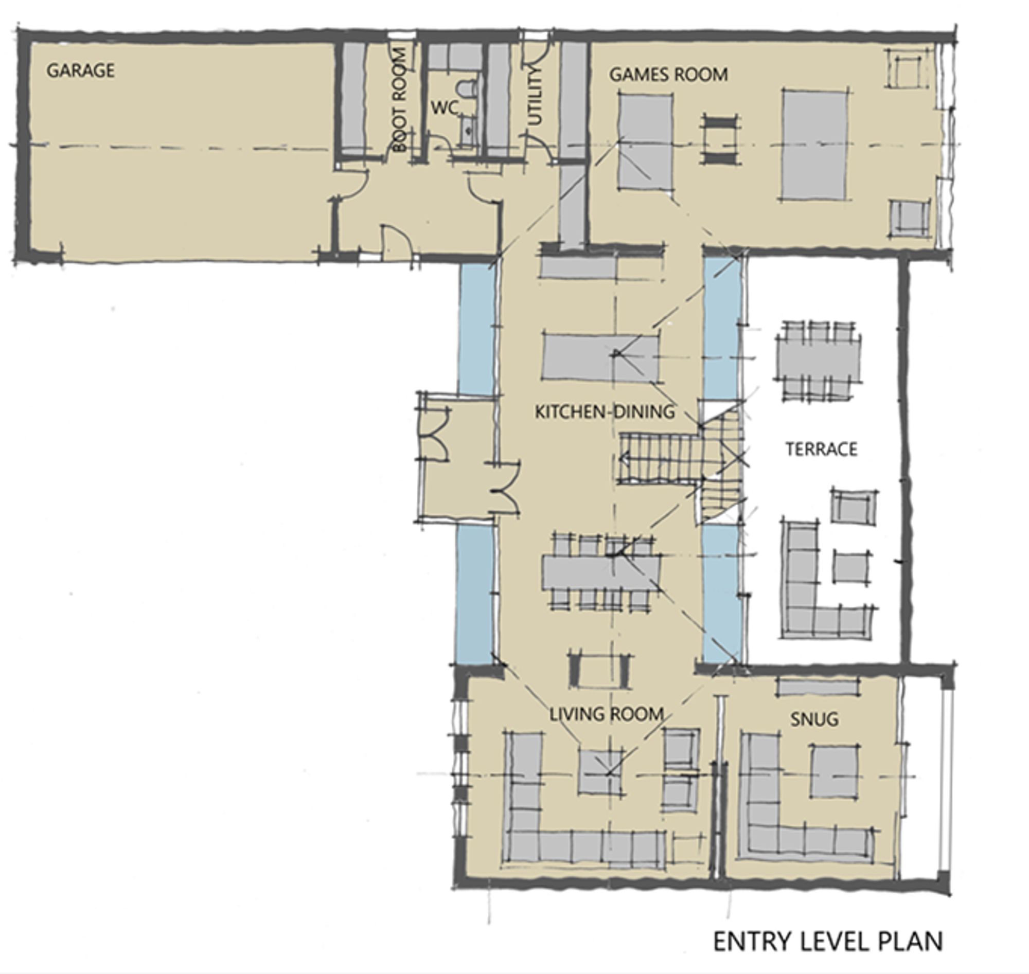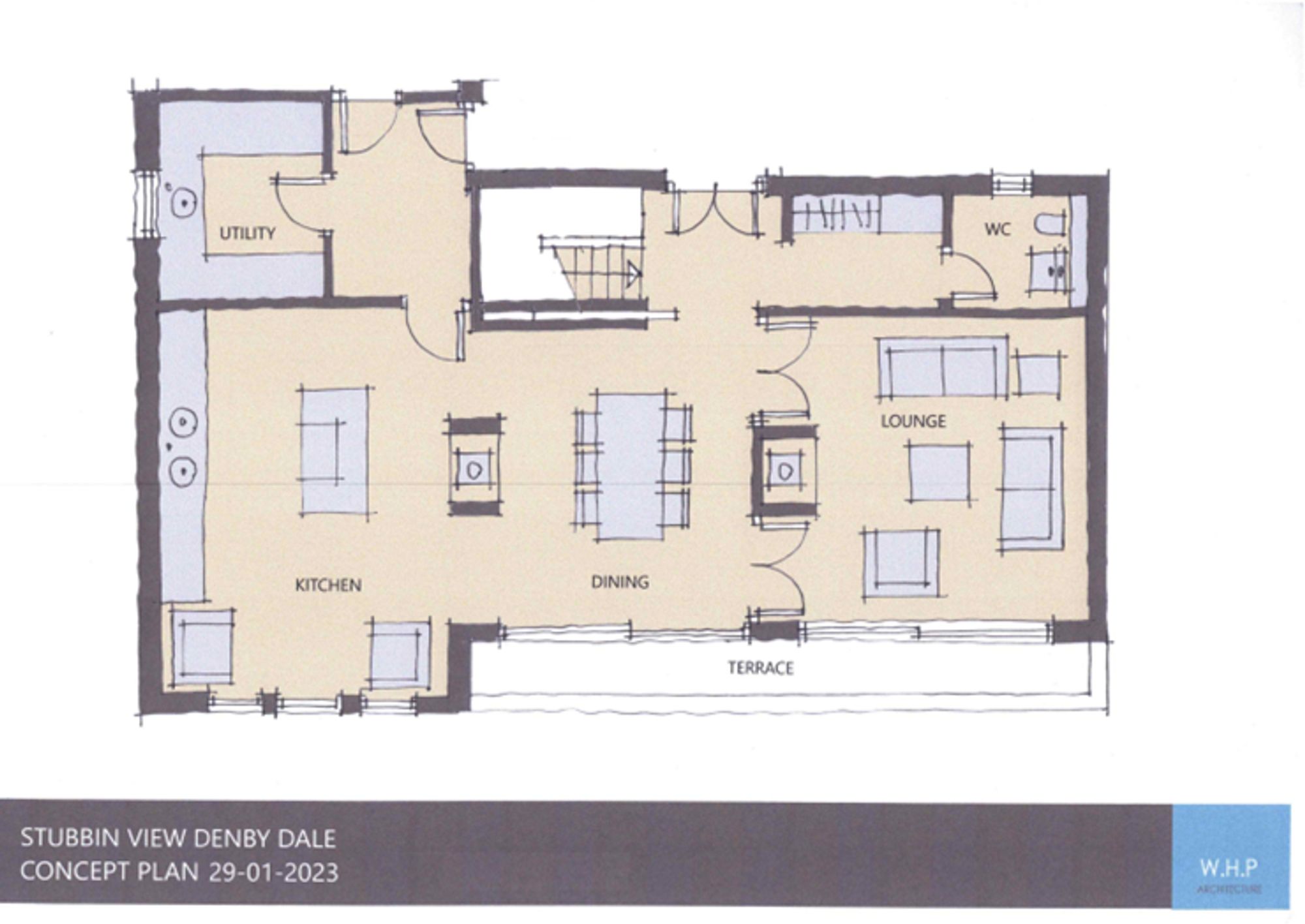 Approximately 3878 square feet. We have had plans drawn by a local architect of high repute of how to convert the ground floor, and to add superbly to the first floor, to create an impressive home that, perhaps, takes full advantage of the large grounds and long-distance views across the valley. These plans are, obviously, not submitted to the local council and a purchase on this basis would be subject, of course, to a planning consent being approved. We show the following designs and layout for guidance purposes only, but this will, perhaps, inspire people to create a further accommodation within this already flexible home.