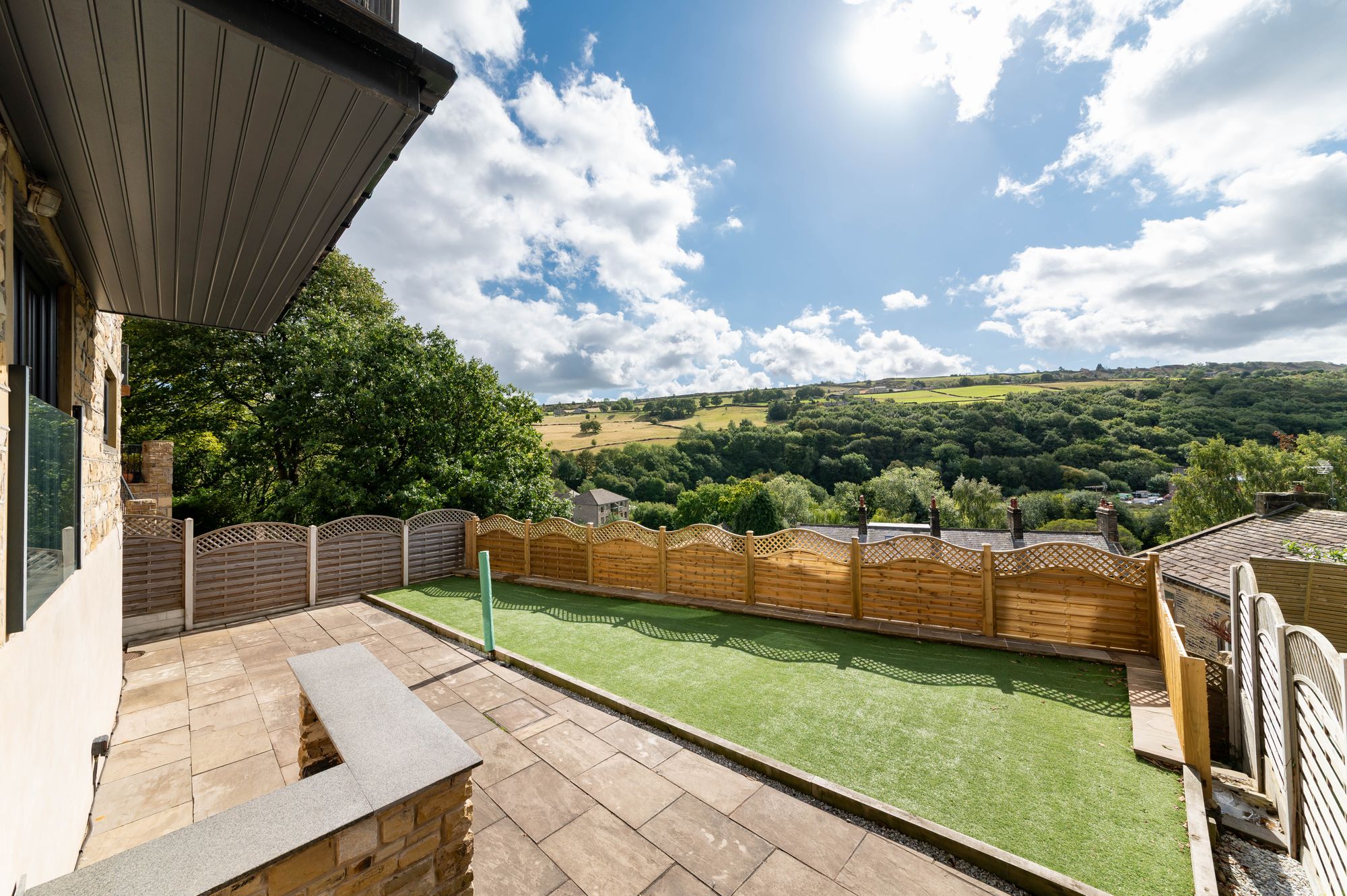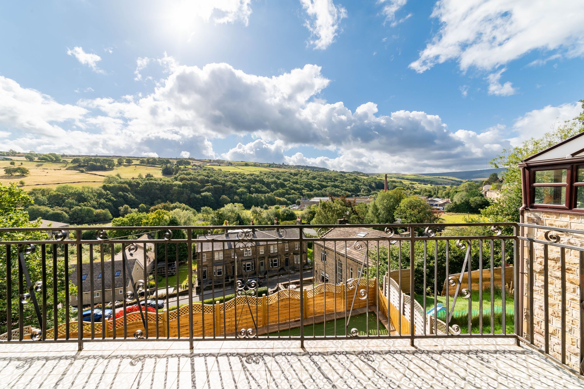 The balcony takes full advantage of the fabulous open aspect panoramic views across the valley, offering an ideal space for enjoying the afternoon and evening sun. There is attractive tiled flooring and cast-iron balustrade.