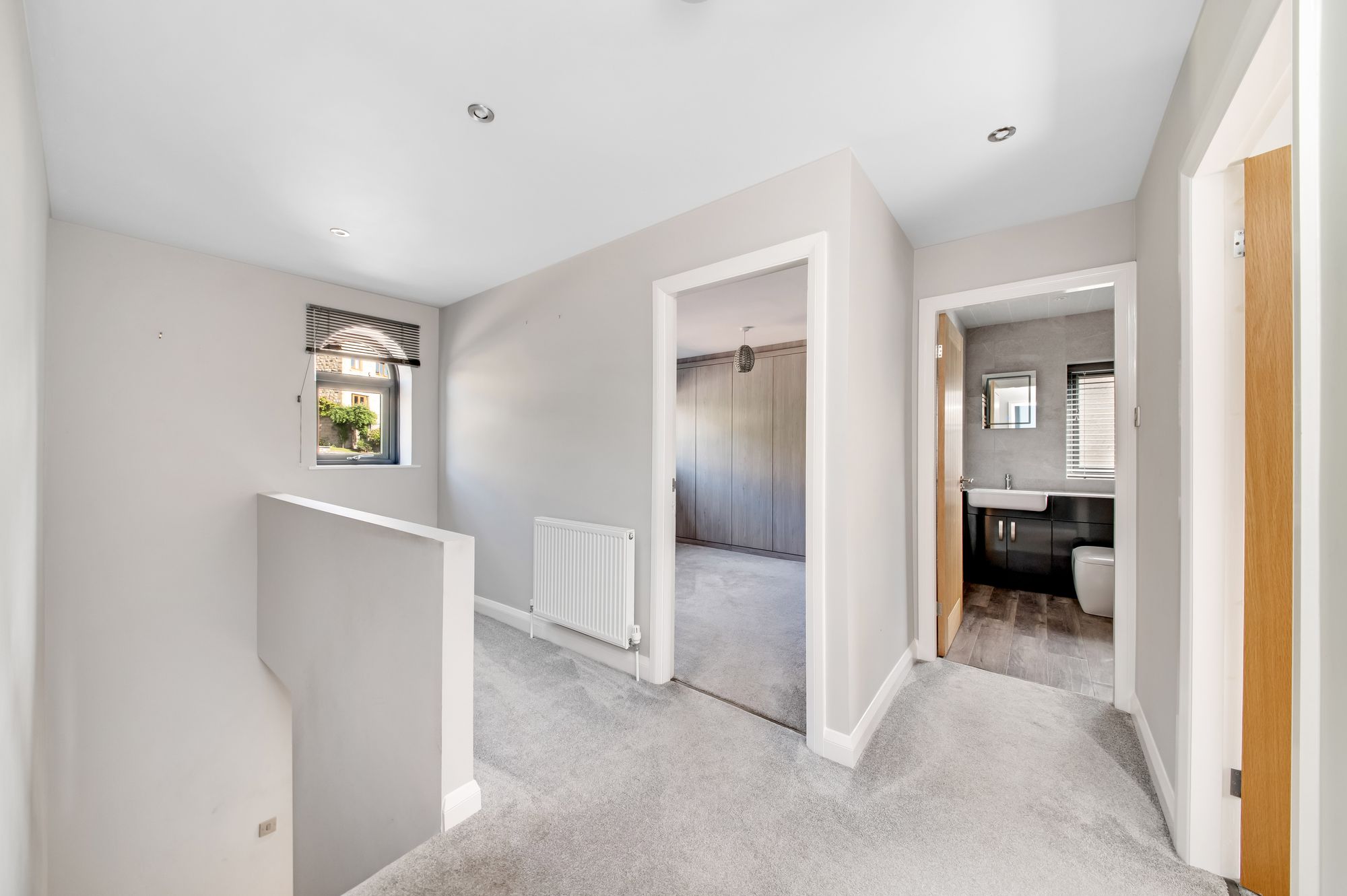 Taking the staircase to the first floor you reach the landing which features a double-glazed arch window to the front elevation providing a great deal of natural light. There is inset spotlighting to the ceiling, a radiator, ample space for an office landing and there are oak doors providing access to three double bedrooms and the house bathroom.