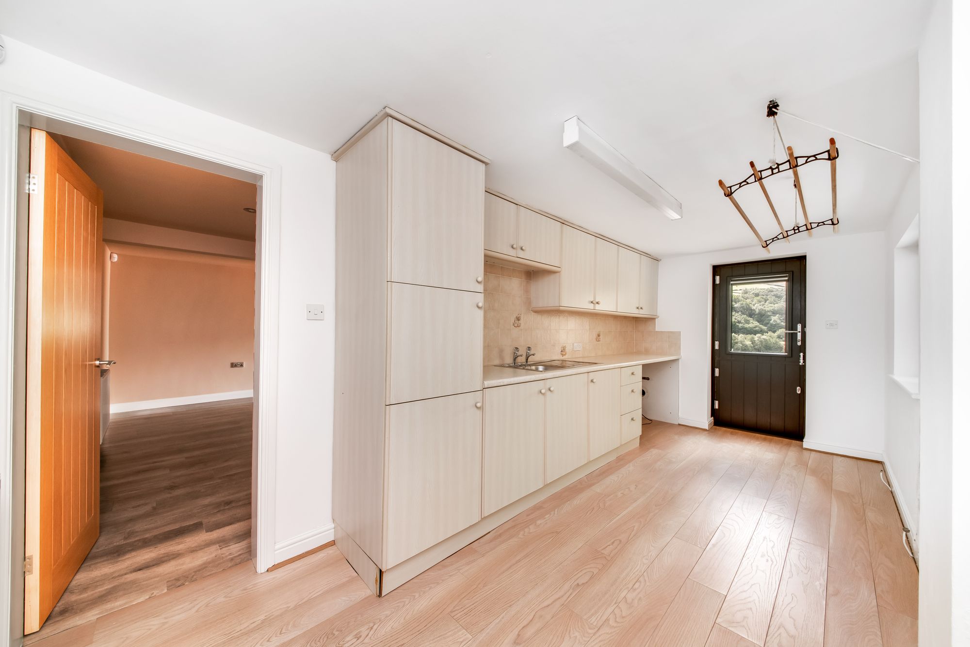 As the floor layout plan suggests the utility room is a generous proportioned space and subject to the prospective buyer’s needs. This could be utilised as a kitchen for a self-contained annex for the lower ground floor. It features a wide range of fitted wall and base units with rolled edge work surfaces over which incorporate a single bowl stainless steel sink and drainer unit with chrome taps. There is plumbing for an automatic washing machine and space for a tumble dryer and there is tiling to the splash areas and high-quality flooring. The utility room features a ceiling strip light point, a radiator, a bank of double-glazed windows to the side elevation and there is a double-glazed composite stable style door to the rear elevation providing direct access to the gardens.
