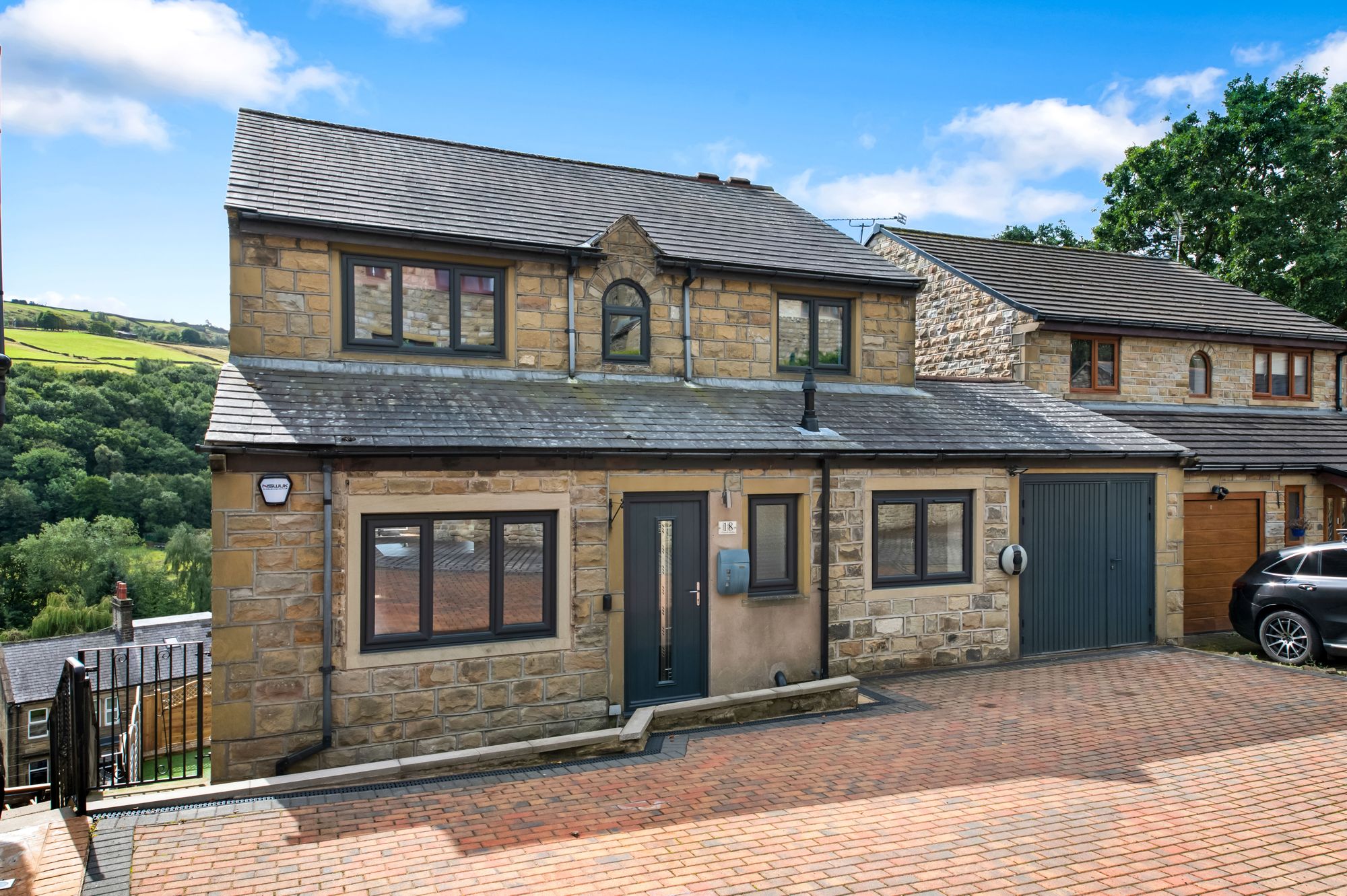 The property accommodation briefly comprises of entrance hall, downstairs w.c., fabulous L-shaped, open-plan living/dining-kitchen which has been split into a playroom and a useful storage room To the lower ground floor there are two double bedrooms, a shower room, family room, snug and utility room. This floor has external, separate access so could be a self-contained, two-bedroom annex. To the first floor there are three well-proportioned double bedrooms, the house bathroom and with bedroom one having ensuite shower room. Externally there is a driveway to the front providing off street parking for four vehicles. There is a fabulous balcony accessed from the family area which offers fantastic panoramic views across the valley, the gardens are low maintenance with lawn areas and a flagged patio ideal for alfresco dining and barbecuing.