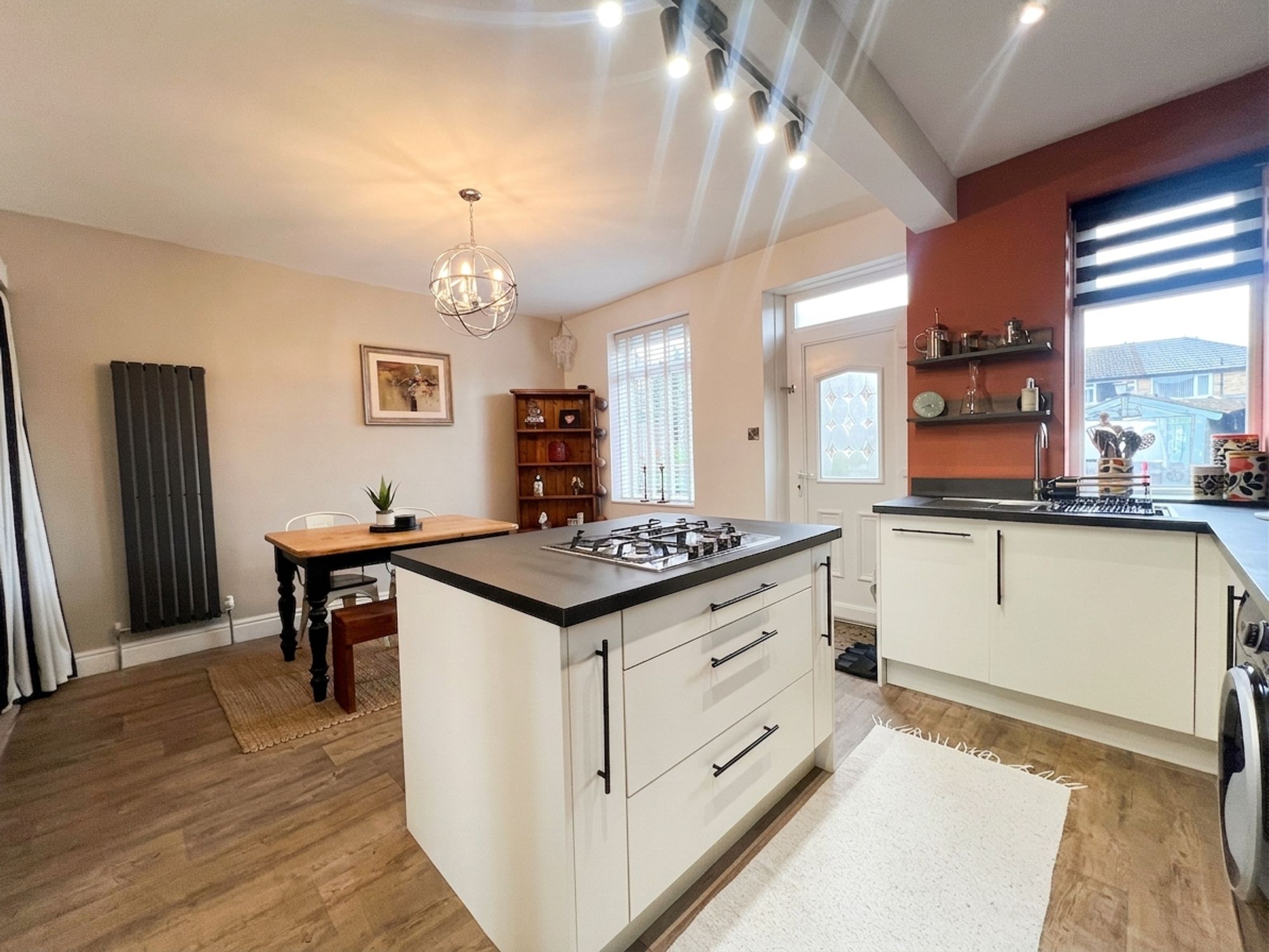 As the photography suggests, the open plan dining kitchen room offers a wealth of natural light which cascades through double-glazed windows to rear elevation and double-glazed, external door with obscure-glazed inserts that leads to the garden.
