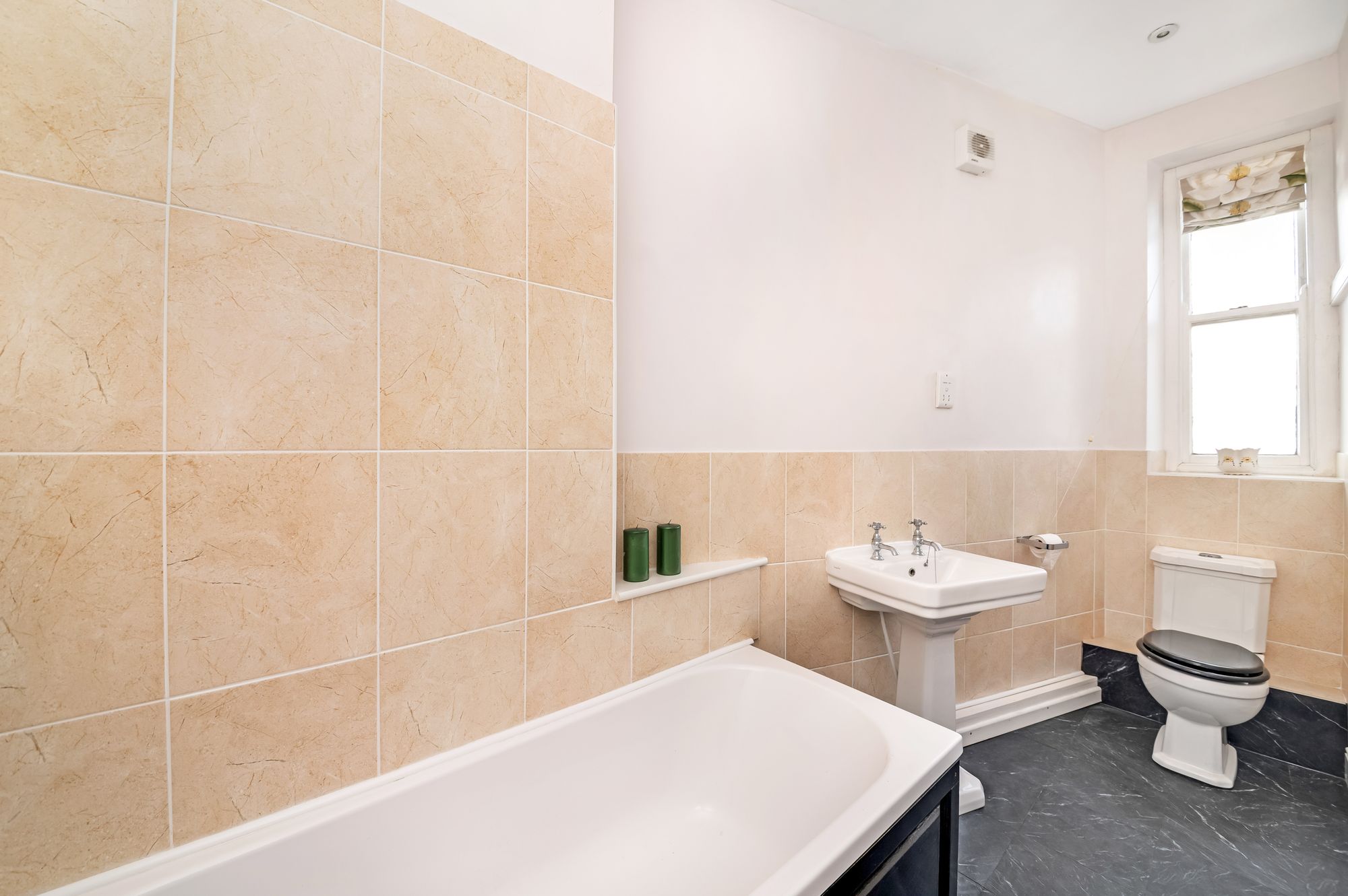HOUSE BATHROOMComprising of a three-piece suite in the form of; low flush W.C, pedestal hand basin with chrome taps over, and bath with handheld shower attachment. There is part tiling to walls, shaver socket, inset spotlights, extractor fan, central heating radiator and obscured glazed window.