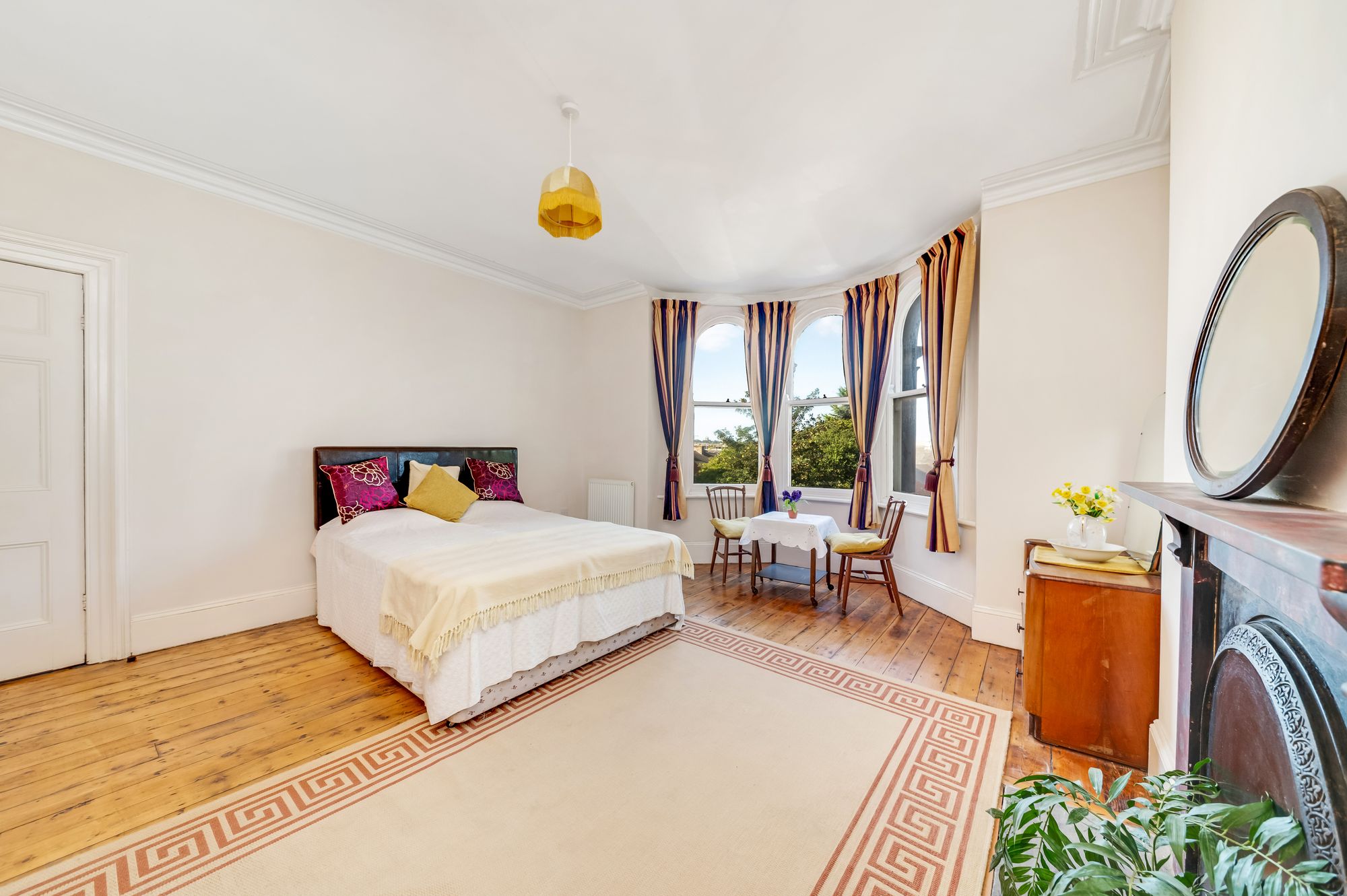 BEDROOM TWOA further spacious double bedroom with coving to the ceiling, ceiling light, wooden floor, two central heating radiators, built in storage cupboard, wooden framed sash windows and a cast iron fireplace with slate surround and stone hearth. The room also has a built in cupboard.