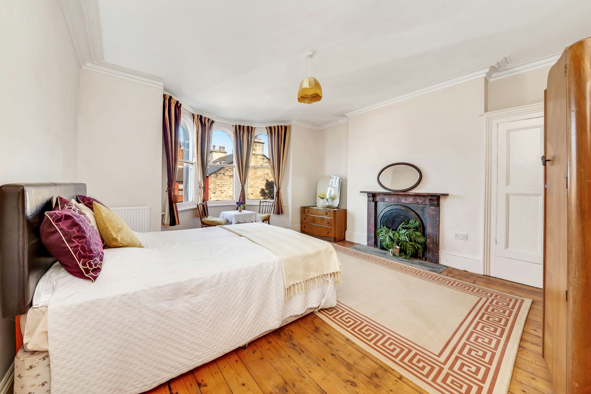 BEDROOM ONEA spacious double bedroom with ceiling light, coving to the ceiling, built in cupboard, two central heating radiators, wooden floor, wooden framed sash windows and the focal point of the room being a cast iron fireplace with slate surround and stone hearth.