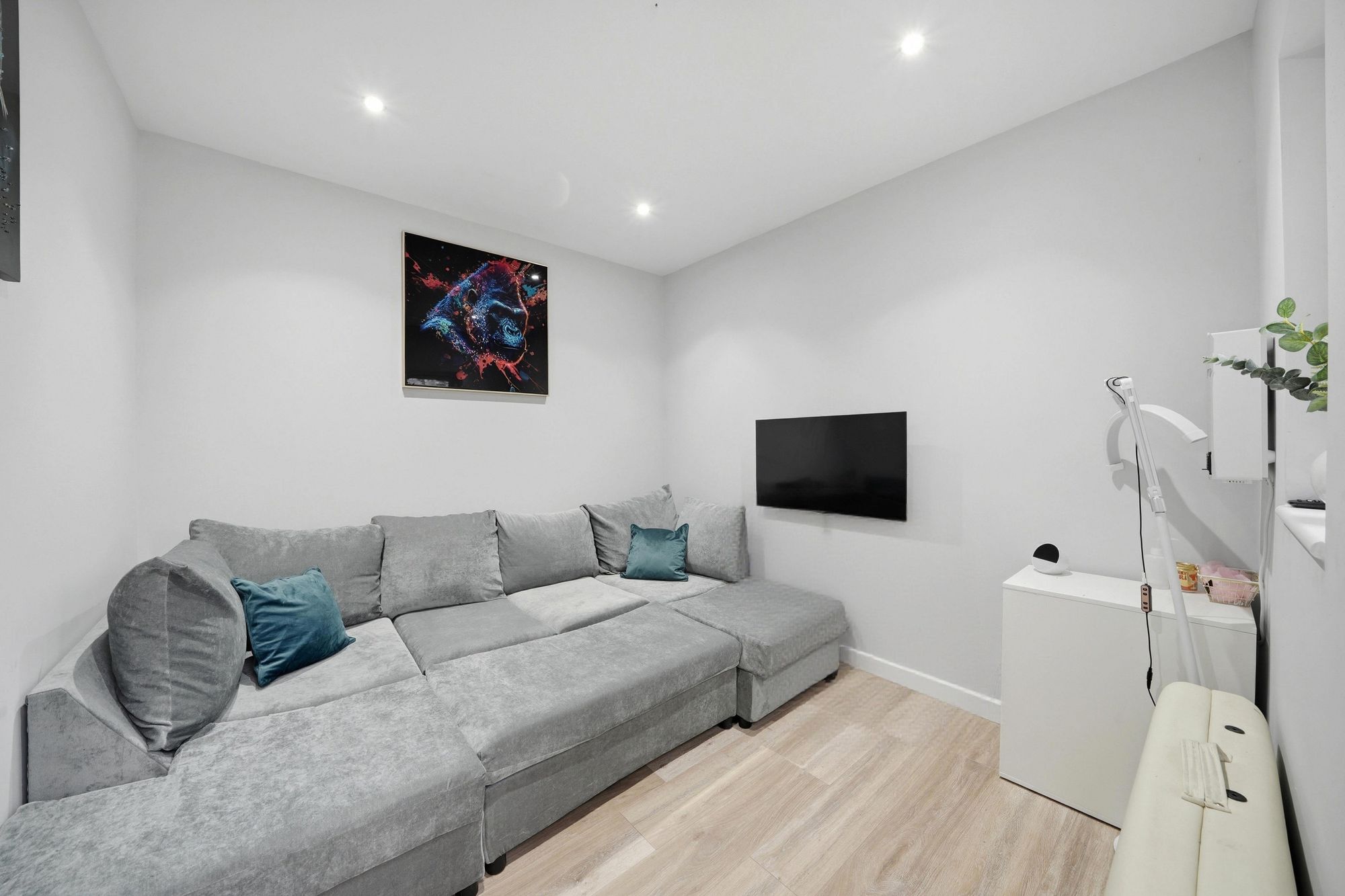 With pvcu double glazed windows and French doors which are virtually floor to ceiling in height and take advantage of a lovely aspect across the rear garden and Colne Valley. This has a south westerly aspect and as such enjoys sunshine for most of the day. There are inset LED downlighters and oak effect laminate flooring.