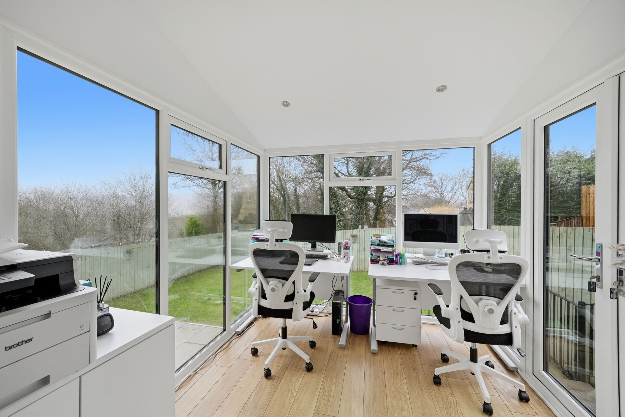 This is situated adjacent to bedroom number one and enjoys a similar aspect through pvcu double glazed windows. There is a ceiling light point, central heating radiator and oak effect laminate flooring.