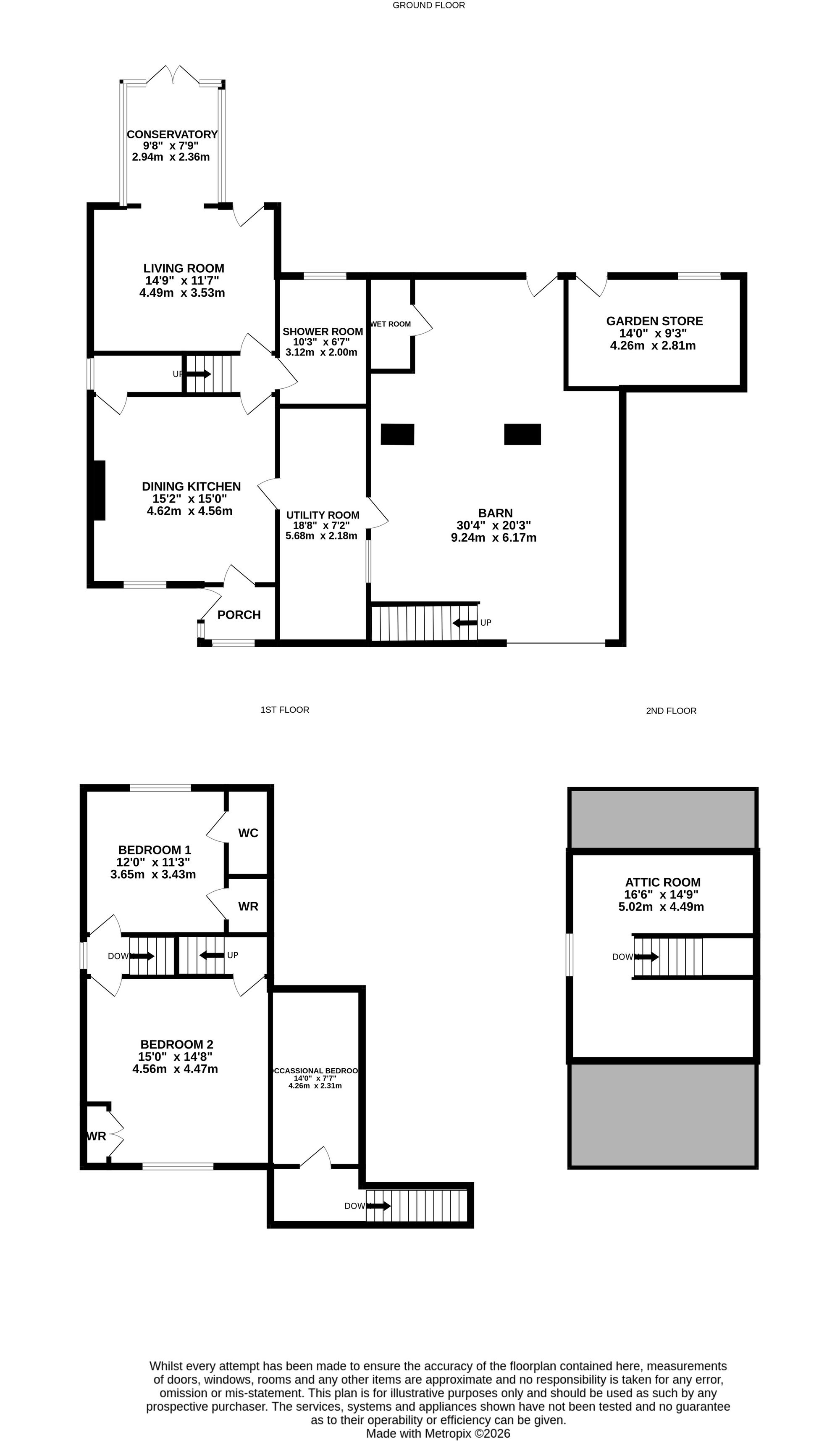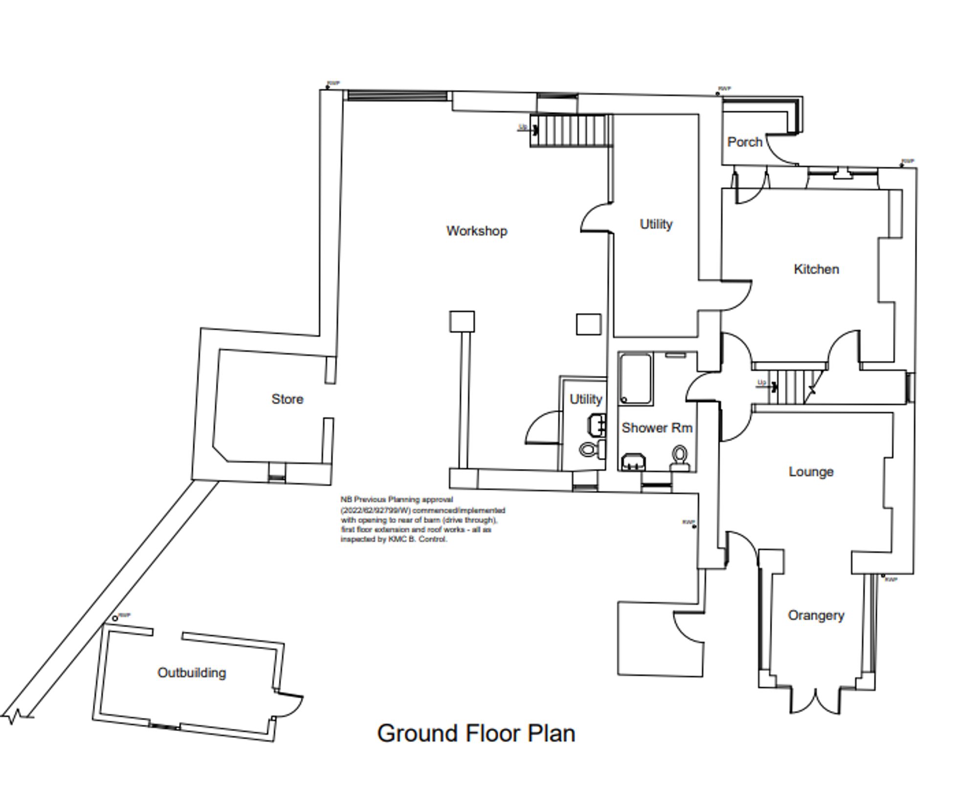 Adjoining the cottage is the good-sized, two-storey barn. To the ground floor, there is an automatically operated, up-and-over door giving access directly from Towngate. This provides a large amount of parking and barn-style storage. There is a downstairs w.c. and a staircase leads up to a good-sized storeroom. The barn has planning consent to be converted to provide additional accommodation. The plans demonstrate the following accommodation.