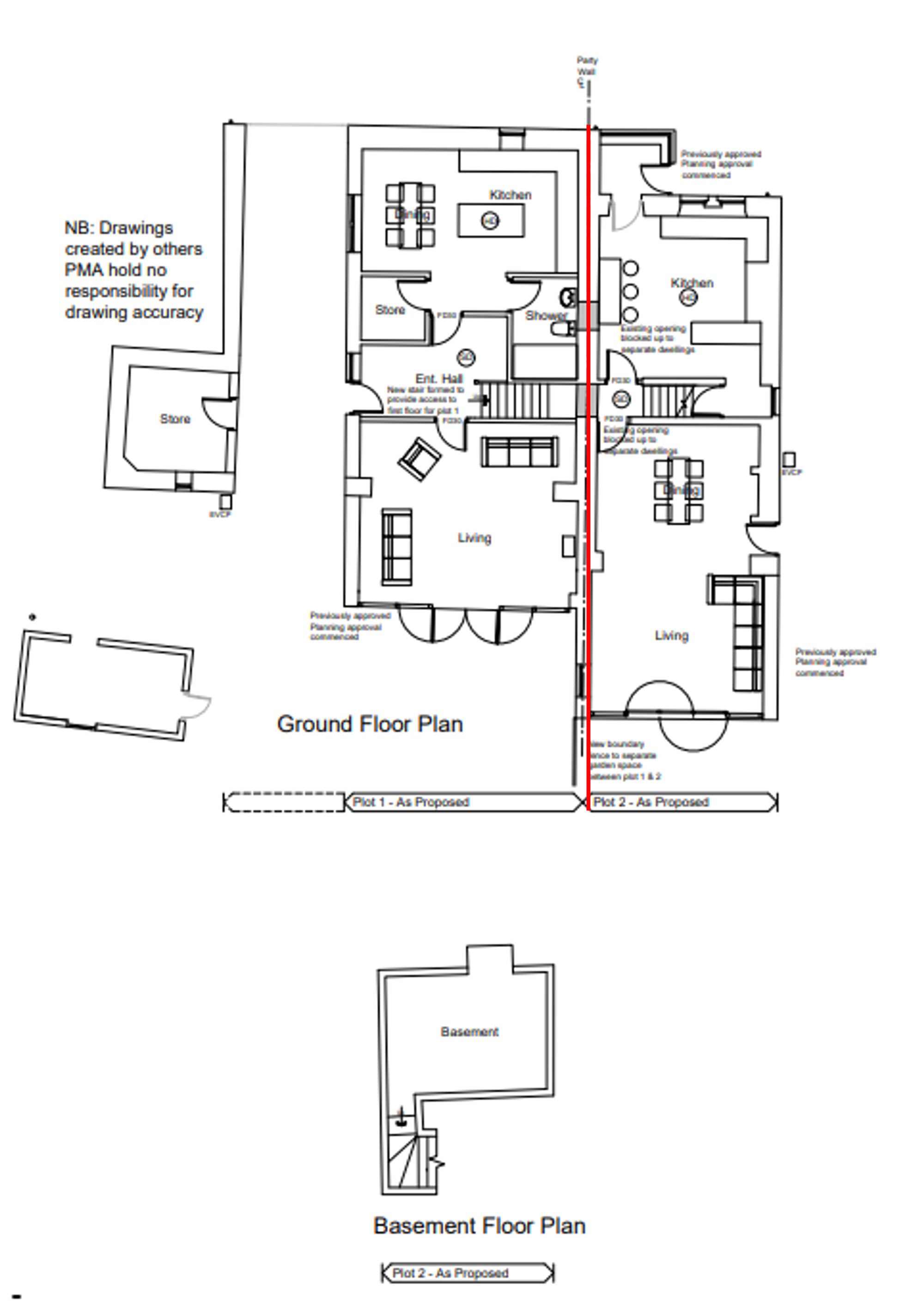 OPTION B - Split into 2 propertiesIf the home were to be divided, there would be the following accommodation to the cottage, large living room with superb views out over the gardens from the living/dining room, central hallway, large breakfast kitchen, entrance porch, two double bedrooms to the first floor, bedroom one being extremely large with en-suite and house bathroom and staircase up to the attic room. The barn would have the through-driveway/garaging as previously mentioned and would include a fabulous living room overlooking the gardens, central hallway, downstairs w.c./shower room, utility room/store and impressive dining kitchen. There is also an additional store space to the first floor, there is a good-sized landing, three bedrooms, bedroom one, a very large room with impressive adjoining en suite, bedroom two, a good-sized double room, bedroom three, shown on the plan as a study and house bathroom. All properties would have pleasant gardens and would have a division.