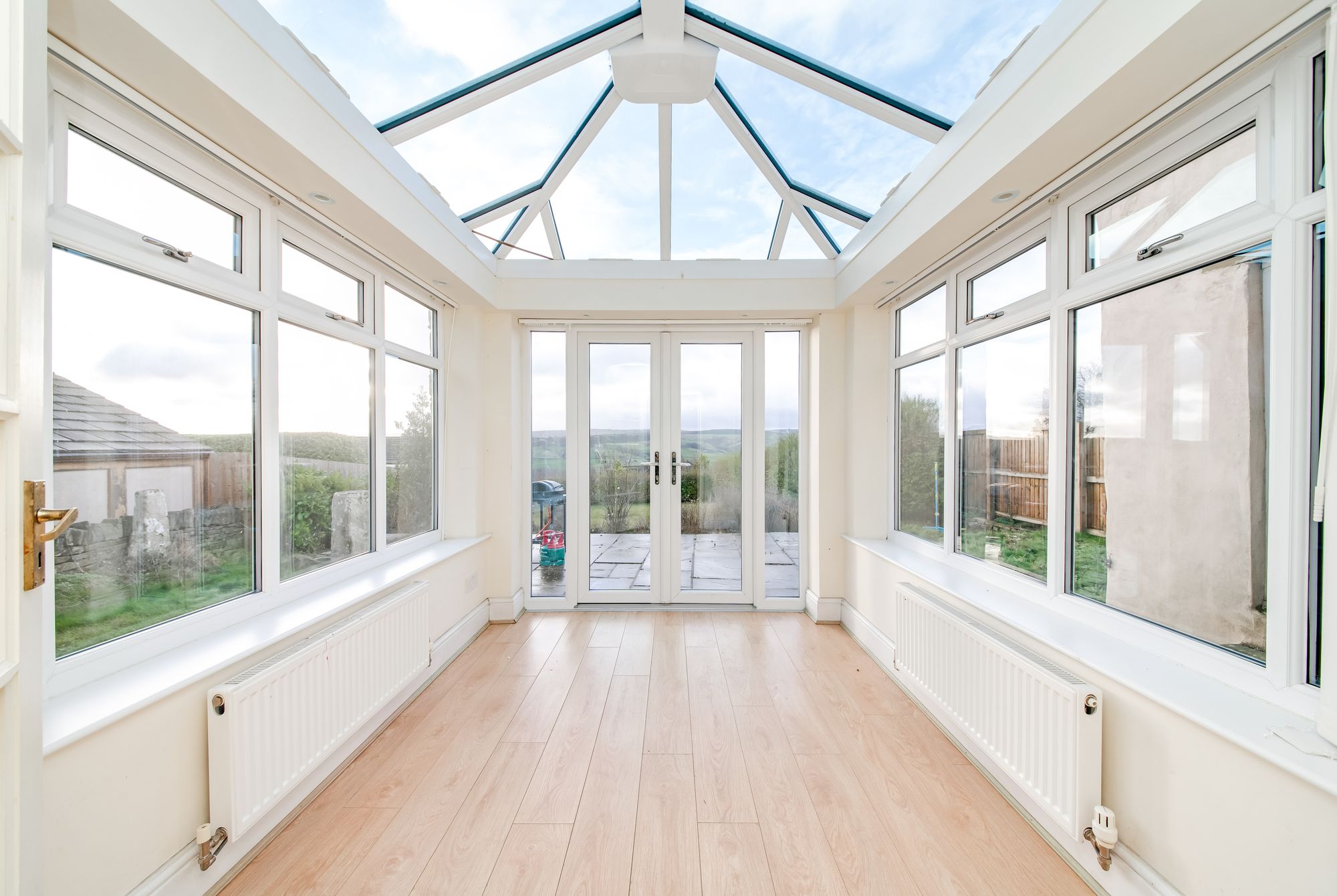 A good-sized room with a beautiful view via the conservatory. This room has an attractive fireplace with raised stone-flagged hearth and central ceiling light point. It should be noted that the lounge has an external door which is glazed at the upper portion, giving further natural light to the room. This door is currently blocked from the inside. This could be considered for conversion to a pure, glazed window due to the fact that access out to the rear gardens is courtesy of the conservatory/orangery. This room is beautifully positioned overlooking the extensive rear gardens, and having a fabulous, glazed roof. There are twin, glazed doors giving direct access out to the gardens and the amazing view beyond. Also on the ground floor level is the shower room/downstairs WC.