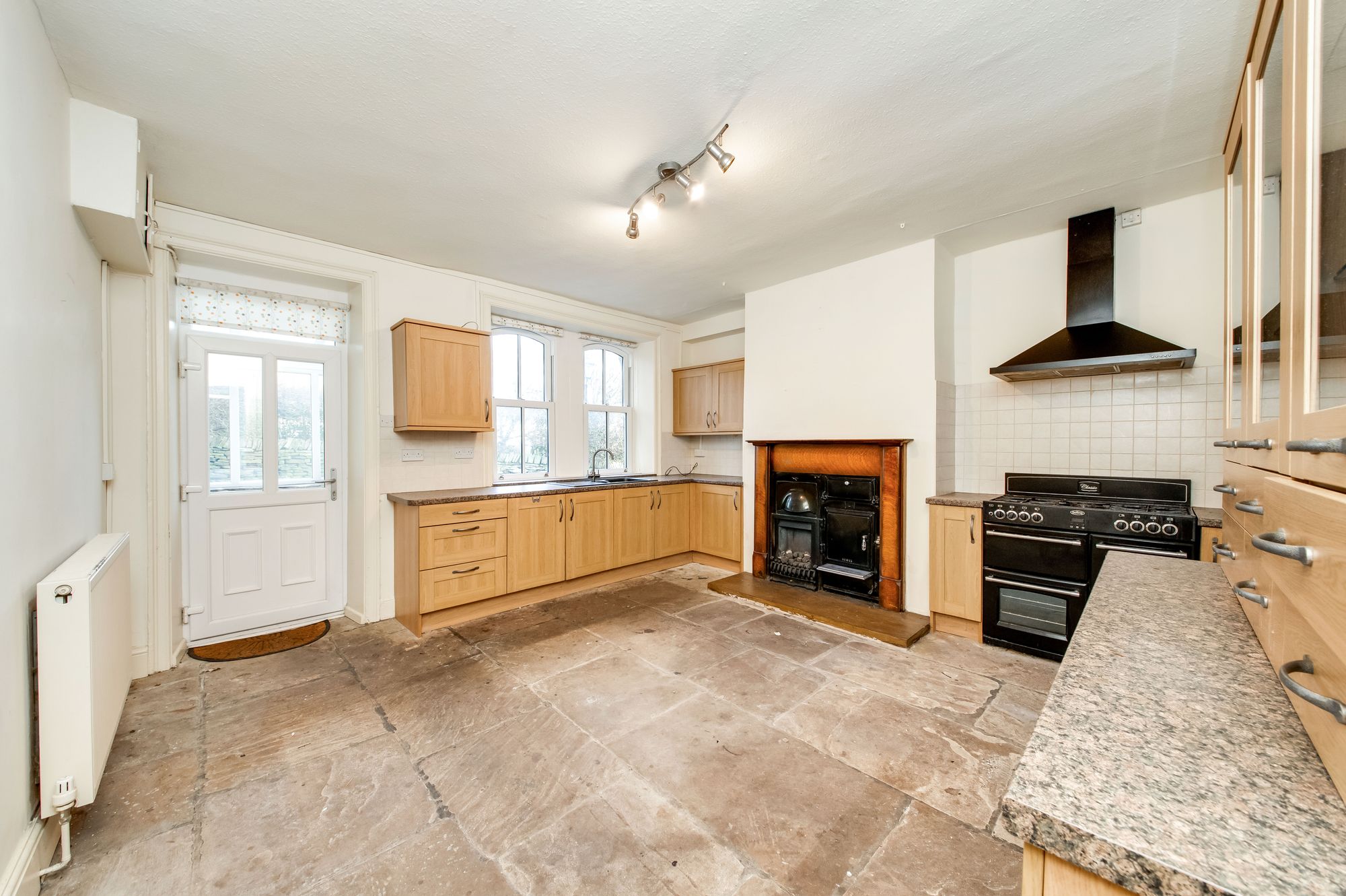 This very attractive room has two beautiful, period-style windows, both fitted with high quality UPVC sash windows. The room has a stone-flagged floor, high central ceiling light point, attractive, period style range and units at both the high and low level which give a large amount of cupboard space. There is a good amount of work surface with inset one-and-a-half bowl sink unit with mixer tap above. There is also a Belling oven with the usual warming ovens, five-ring, gas hob and extractor fan above. A doorway gives access through to a lobby.