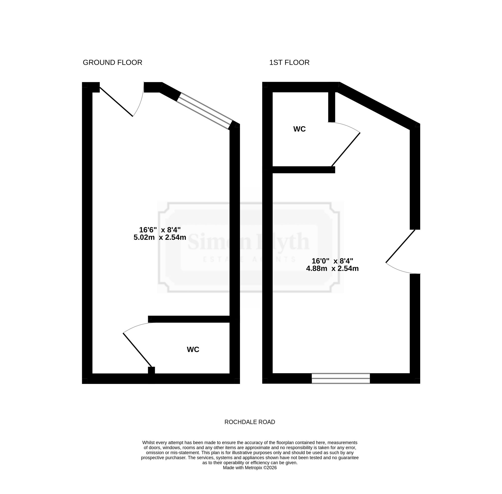 The Ground Floor is accessed from Rochdale Road from Clay House Lane. Briefly comprising to the ground floor room 16’6” x 8’4” together with w.c and first floor rooms 16’6” x 8’4” with w.c.