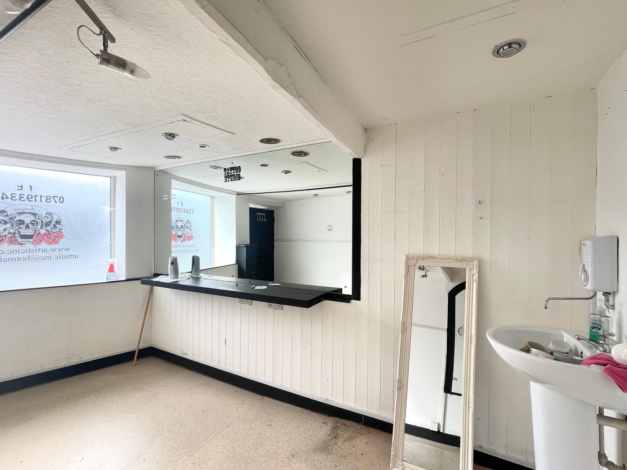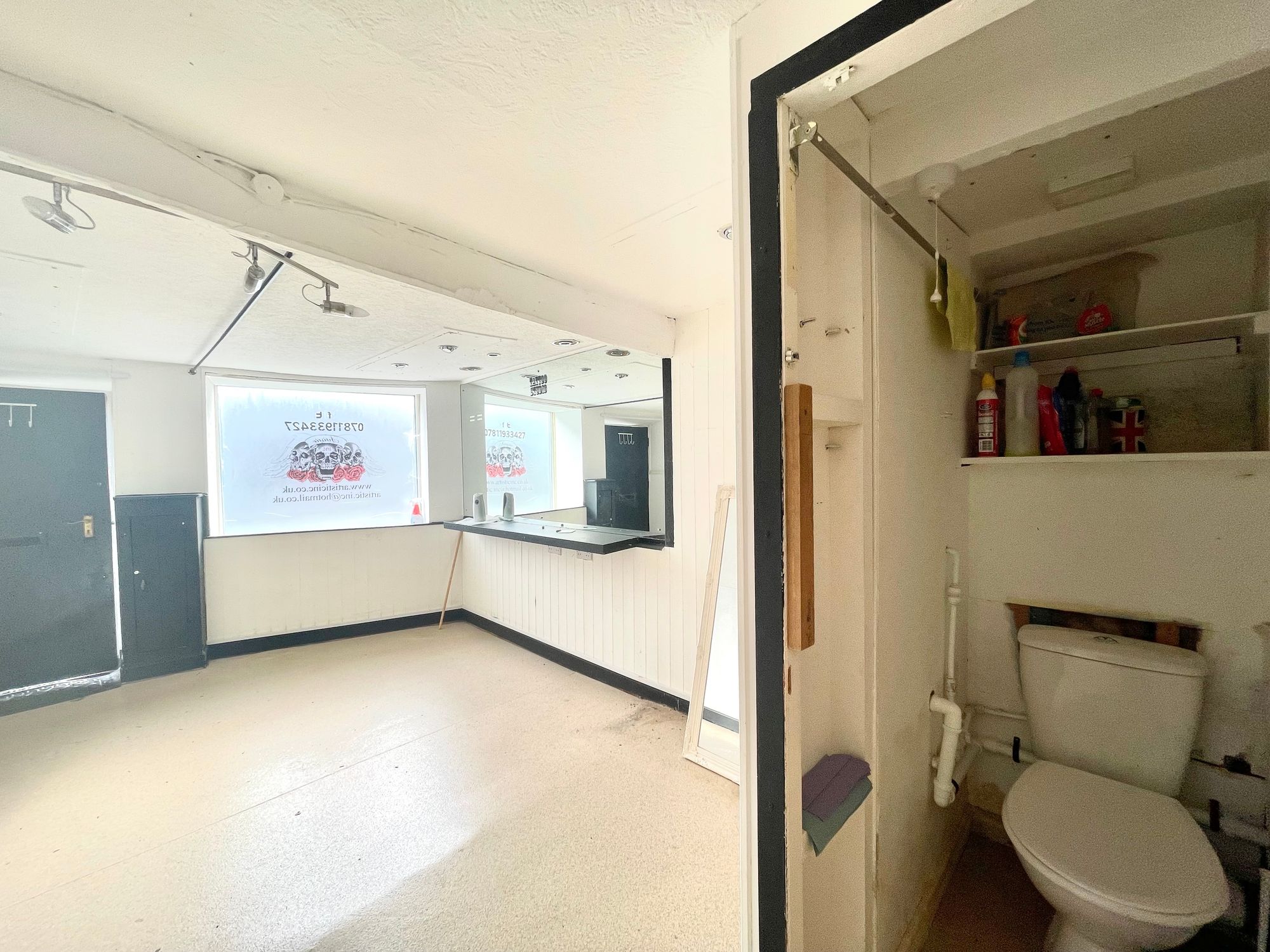 The premises have previously been used as a tattoo studio and offer an excellent opportunity for a small start up business with the option for someone to utilize the first floor either within their business or to let to someone else.