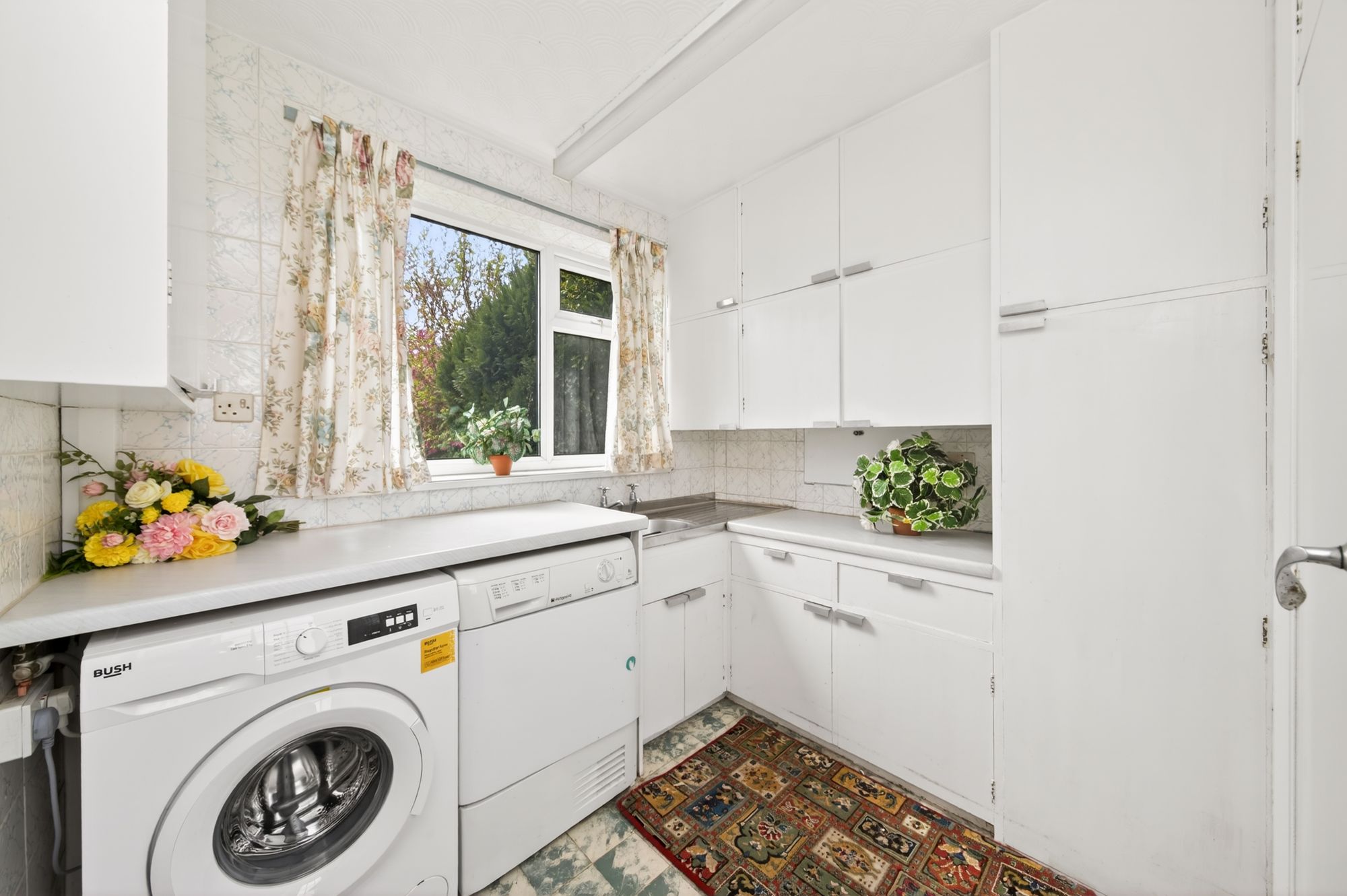 Enter into the property through a double-glazed PVC door into the utility room, which features a double-glazed window to the side elevation, fitted wall and base units, plumbing and provisions for an automatic washing machine and space for a tumble dryer. There is a stainless-steel sink unit with cupboards beneath, LVT flooring, tiling to the walls, a fluorescent ceiling light point, a tall pantry cabinet, and a timber and glazed door with obscure glazed inserts leading seamlessly into the kitchen.