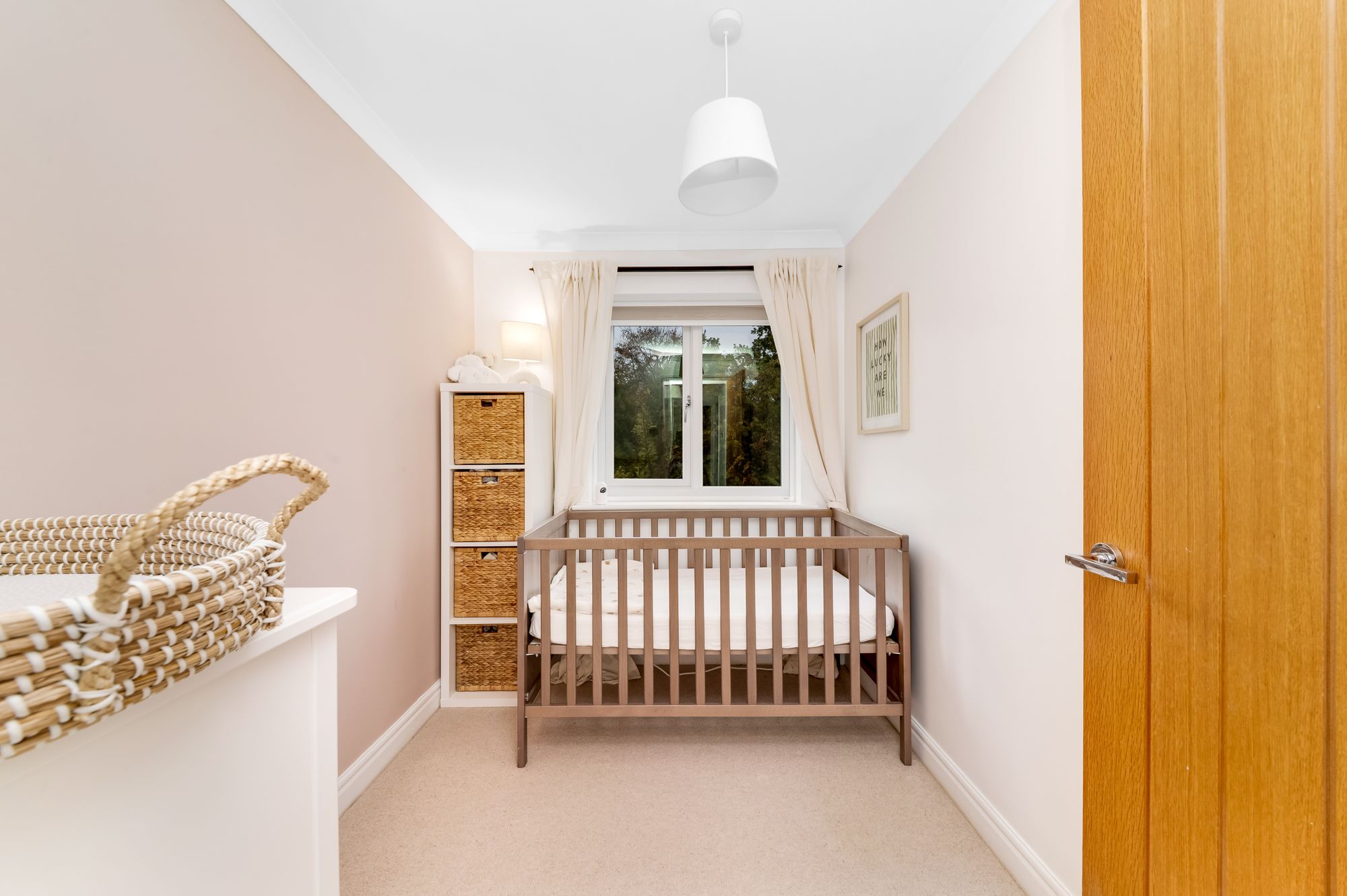 Bedroom three is currently utilised as a nursery. This single bedroom has a pleasant view out over the properties rear garden and woodland scene beyond and a ceiling light point.