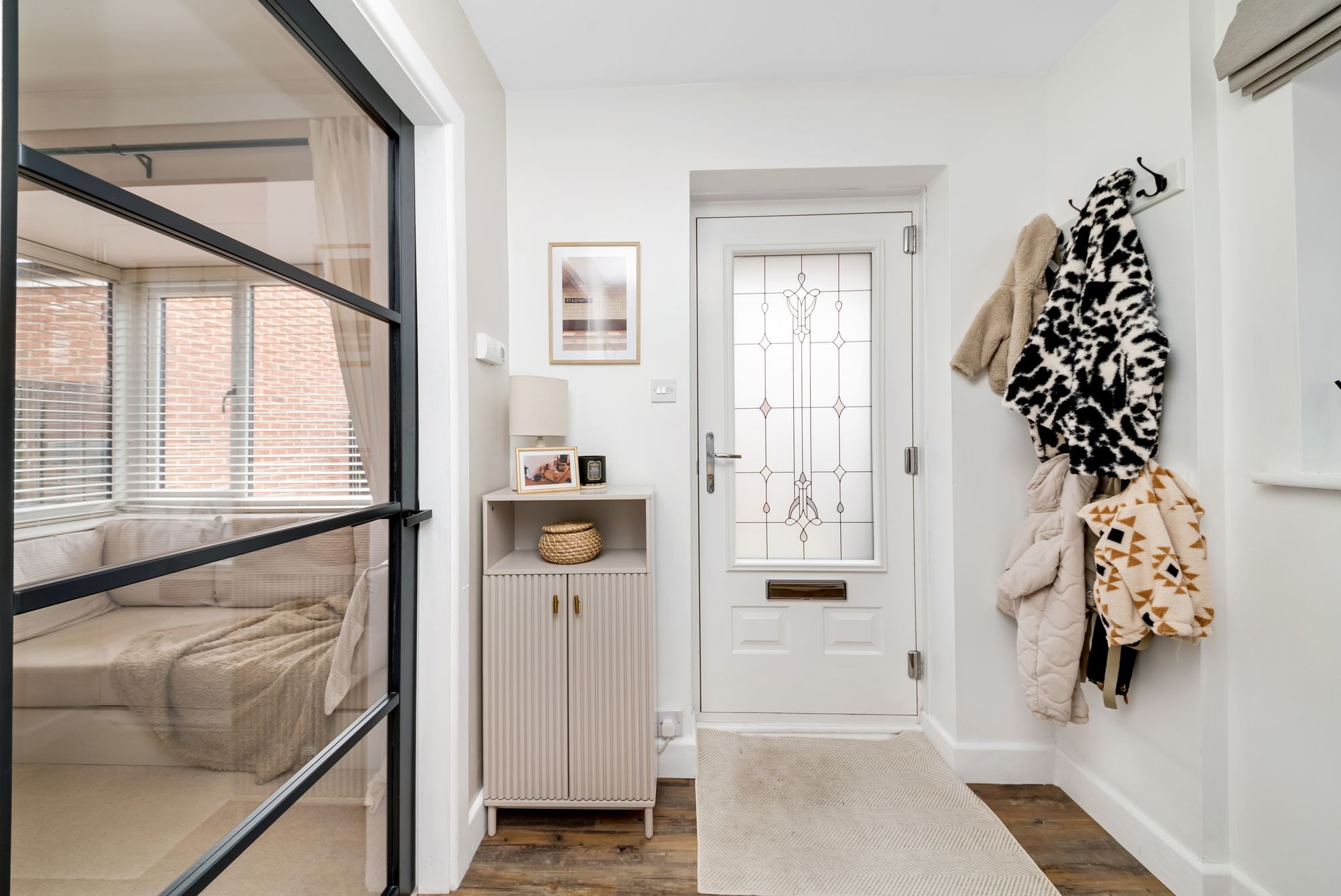 An attractive stone porch gives shelter to the high-quality entrance door with attractive door furniture. This leads through to the entrance hallway. As the photography suggests, it is a particularly stylish hallway. There is a window giving a pleasant outlook to the side, attractive flooring, inset spotlighting to the ceiling and a useful cloaks storage cupboard. An attractive door gives access to the downstairs W.C.