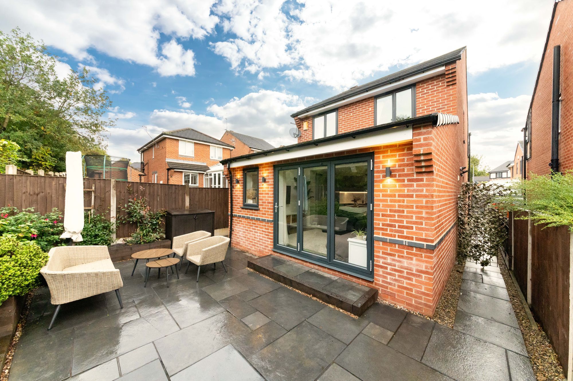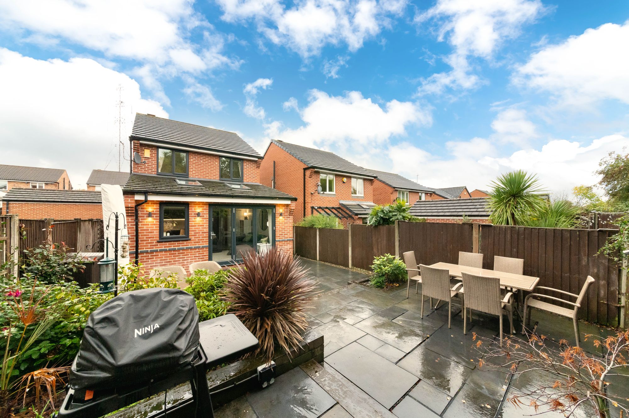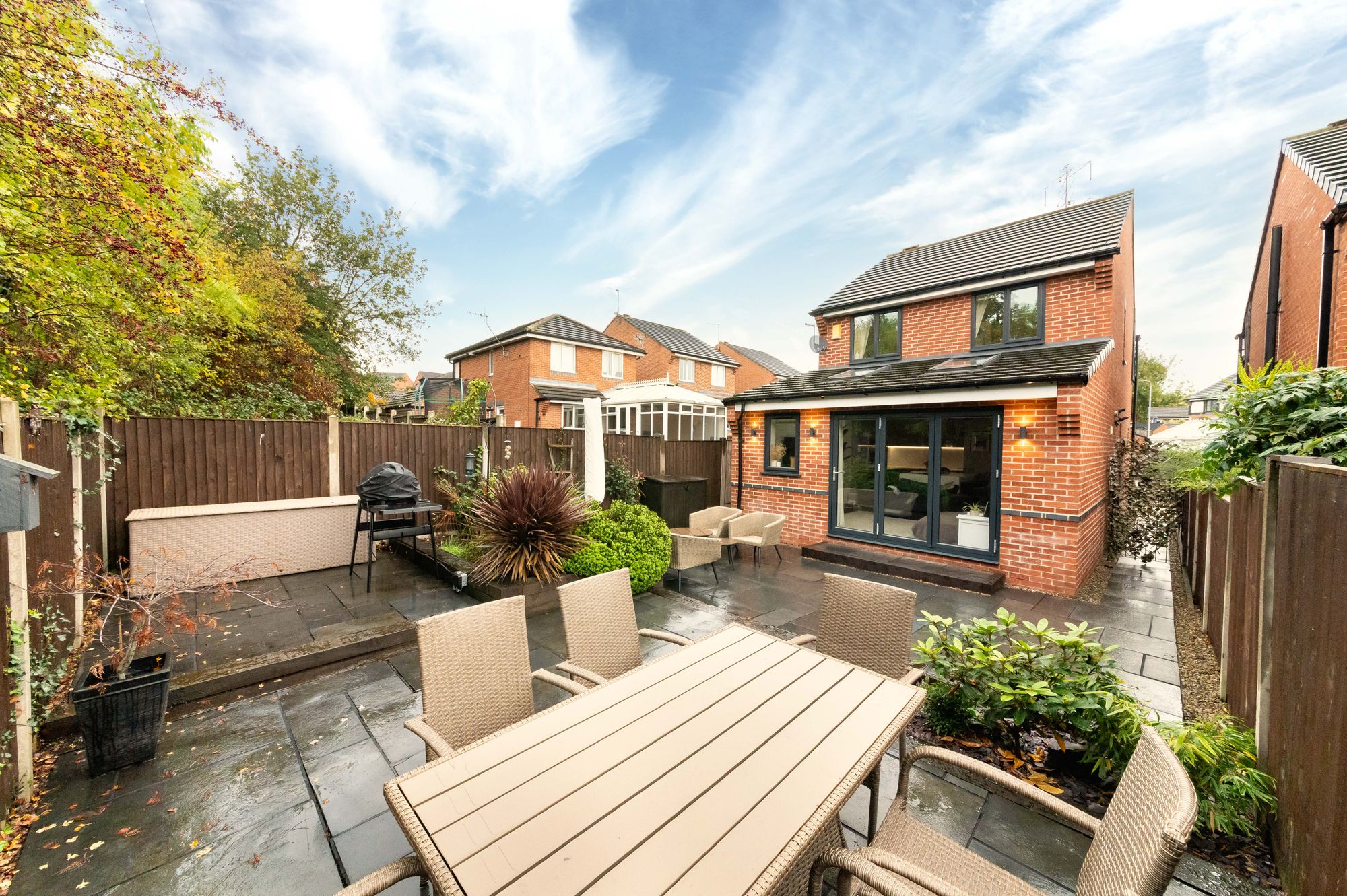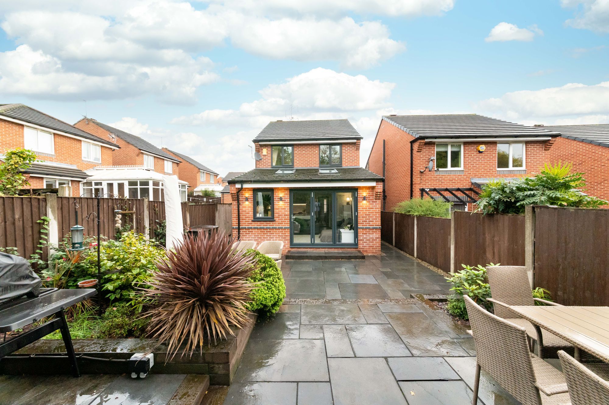 BEAUTIFULLY POSITIONED WITH A DELIGHTFUL, WOODLAND OUTLOOK AND WITH LANDSCAPED, REAR GARDENS. THIS FOUR BEDROOMED, DETACHED FAMILY HOME HAS BEEN SUPERBLY UPDATED IN RECENT TIMES WITH A FABULOUS DINING LIVING KITCHEN THAT HAS BI-FOLDING DOORS OVERLOOKING AND GIVING DIRECT ACCESS OUT TO THE LANDSCAPED GARDENS. THE HOME HAS A HIGH SPECIFICATION THROUGHOUT AND BRIEFLY COMPRISES ENTRANCE HALL, DOWNSTAIRS W.C., LOUNGE WITH BAY WINDOW GIVING AN OUTLOOK TO THE FRONT, A SUPERB LIVING, DINING, KITCHEN WITH HIGH QUALITY FITTINGS, UTILITY CUPBOARD, FIRST FLOOR LANDING, FOUR BEDROOMS AND HOUSE BATHROOM. OCCUPYING A CORNER POSITION AND BEING WELL POSITIONED FOR ATTRACTIVE WALKS, THIS HOME IS ALSO SUPERBLY LOCATED FOR THE COMMUTER BOTH INTO THE CITY BUT ALSO ONTO THE MOTORWAY NETWORK. FOR THOSE WHO SEEK A HIGH SPECIFICATION DETACHED FOUR BEDROOM HOME AT A VERY COMPETITIVE PRICE THIS HOUSE SHOULD BE VIEWED WITHOUT DELAY.
