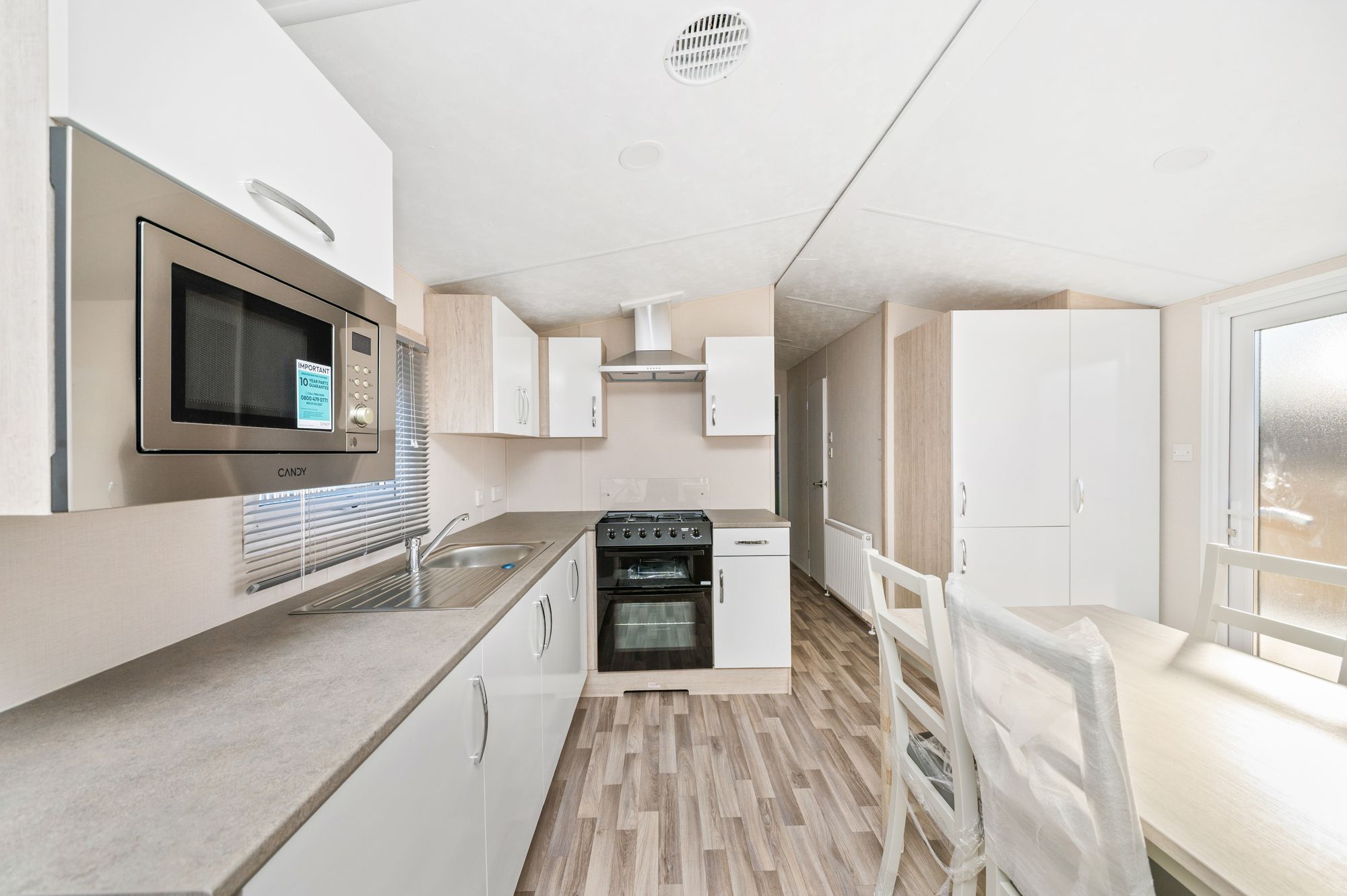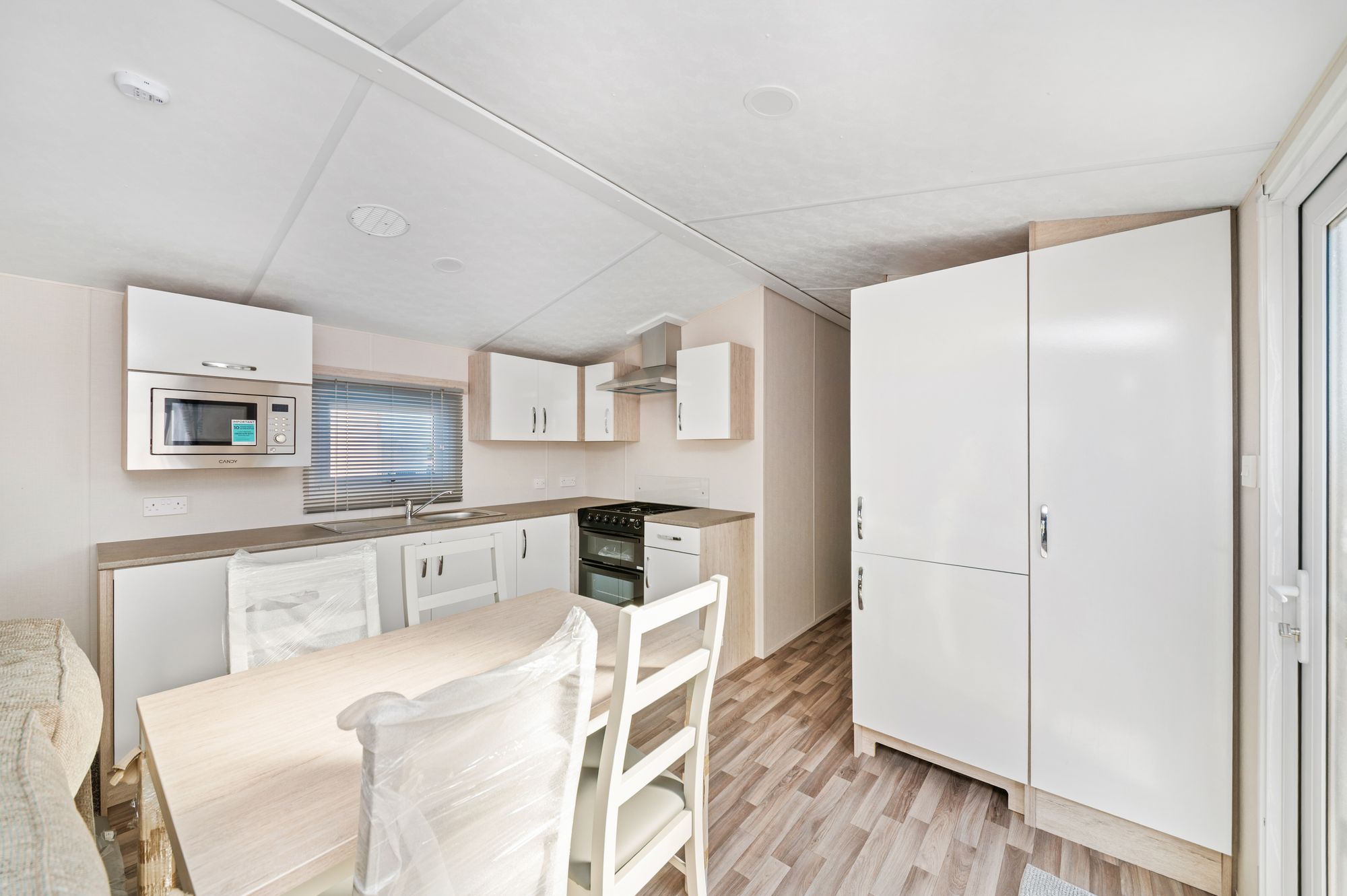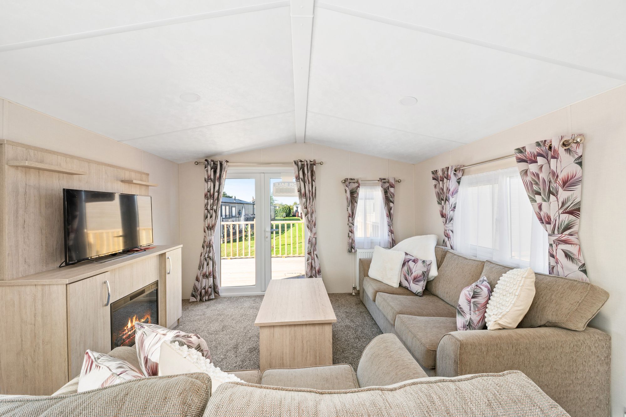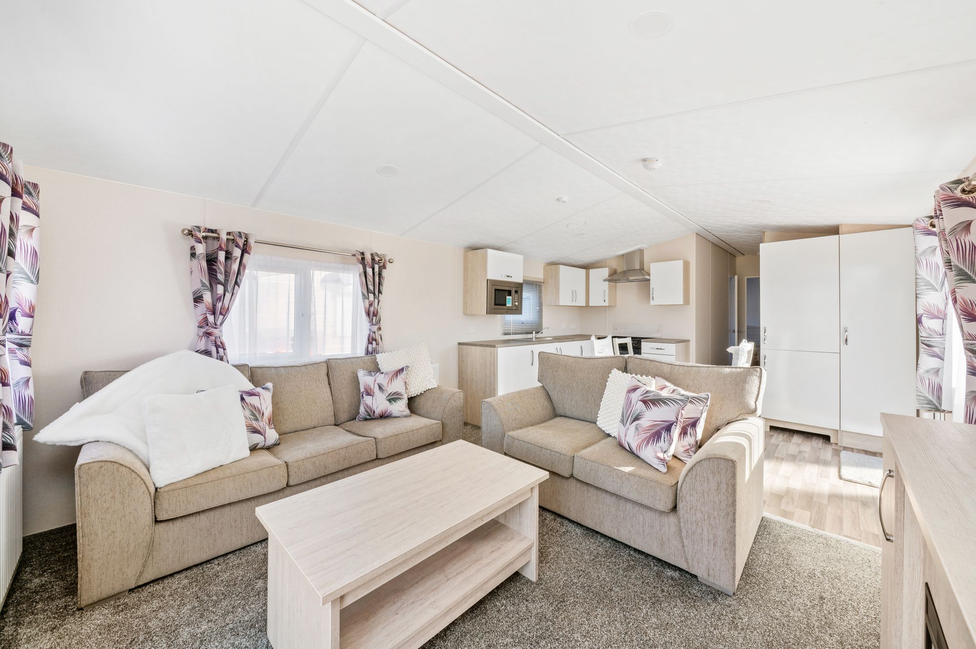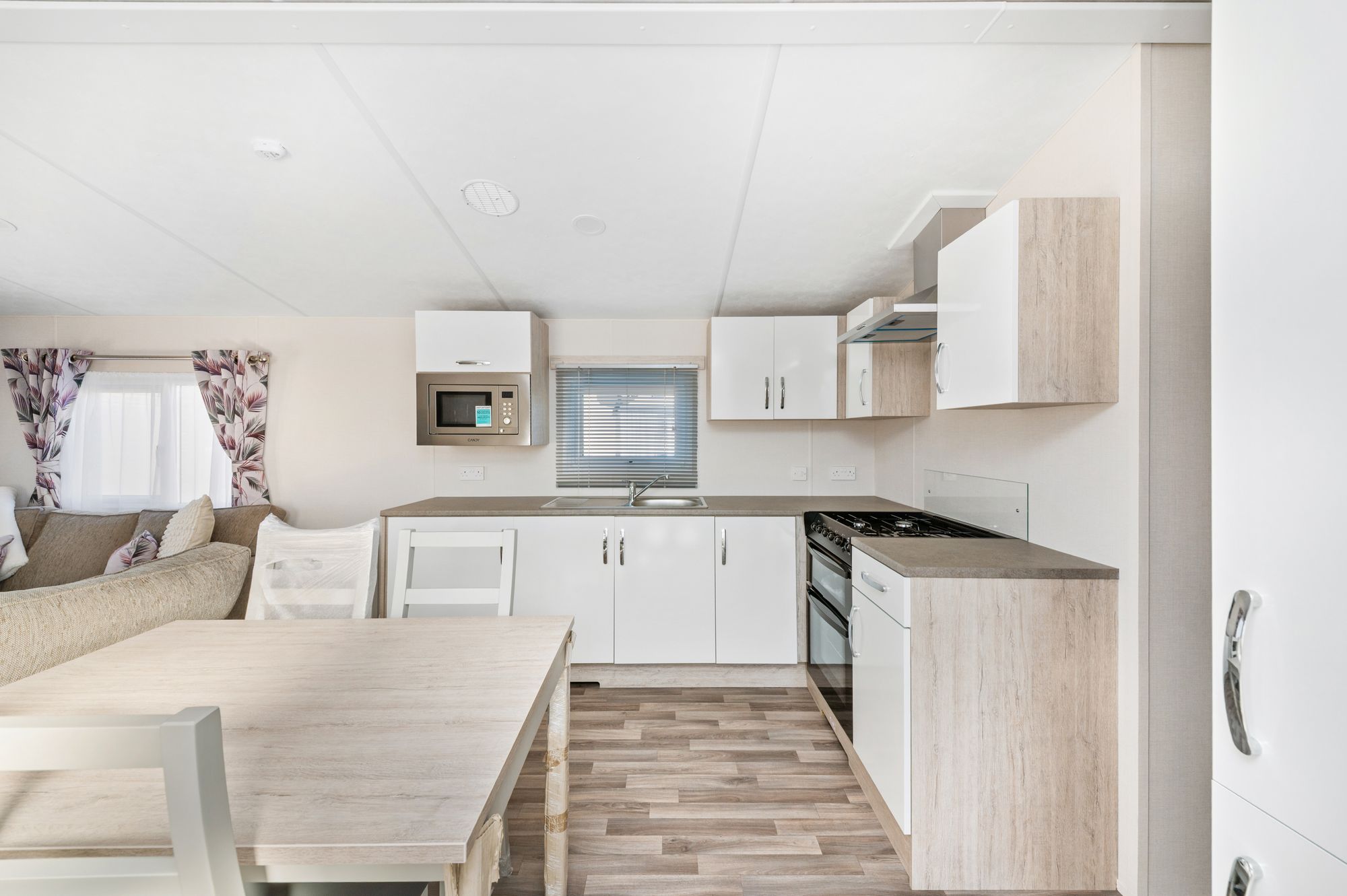 INTERIOR HIGHLIGHTS:• Open-plan design with free-standing sofas, dining table & chairs • Well-equipped kitchen with integrated 70/30 fridge-freezer, microwave, gas oven & hob • Front-opening French doors for natural light and easy access to decking • Pull-out bed in lounge seating for additional guests • Spacious lounge and clever storage throughout
