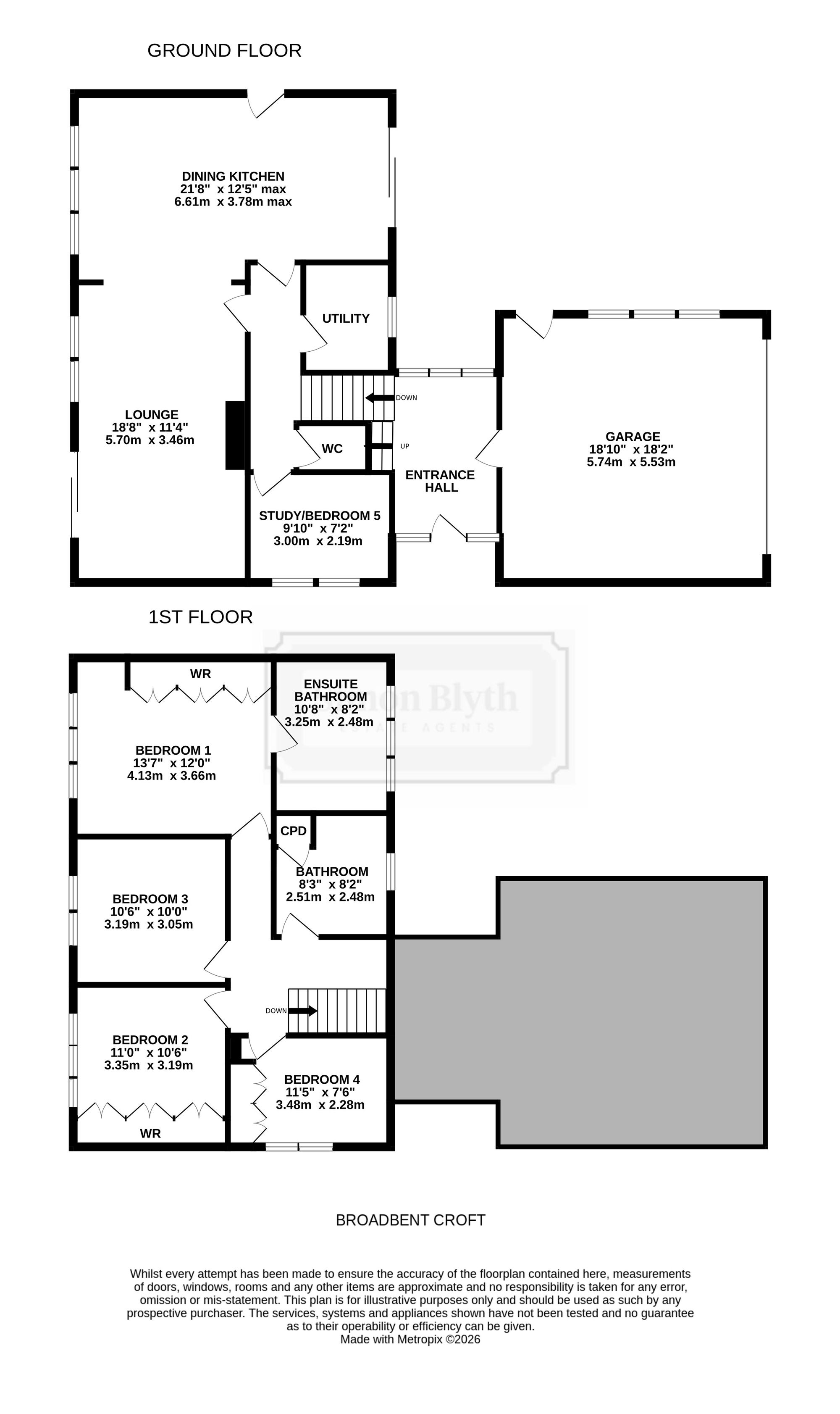 The property accommodation briefly comprises of entrance hall, downstairs w.c., integral double garage, inner hallway, home office/bedroom five and open-plan dining-kitchen, utility room and family room to the ground floor. To the first floor there are four double bedrooms and the house bathroom, the principal bedroom with ensuite bathroom facilities. Externally there is a driveway to the front providing off street parking and a low maintenance lawn with sunken patio area, to the rear is an enclosed garden with lawn area and flagged patio ideal for alfresco dining.