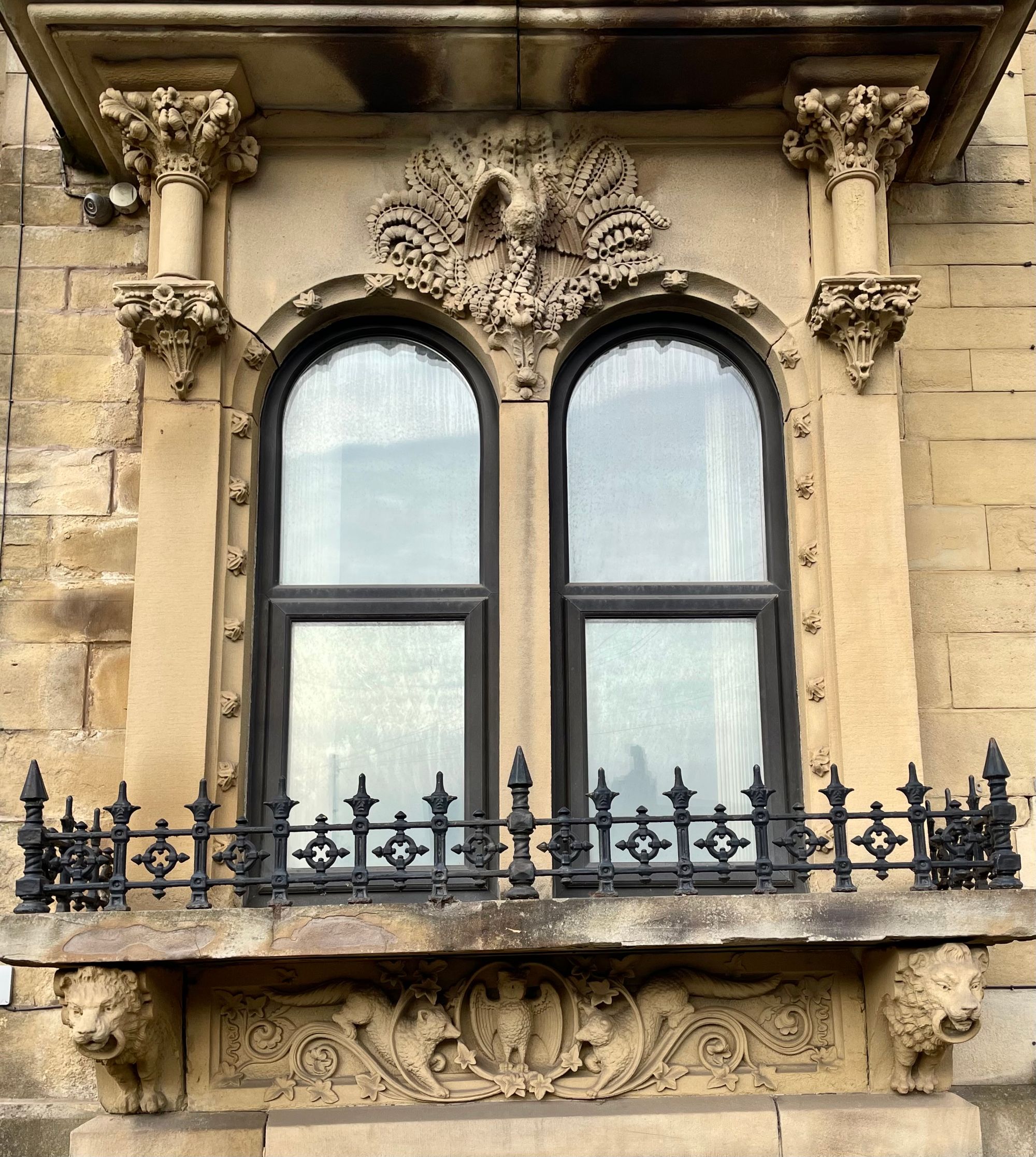 Hebble House is an elaborately designed Ashlar stone fronted end terrace house in a block of three, constructed Circa 1877 and Grade II listed along with gate piers, hand gate and front wall.