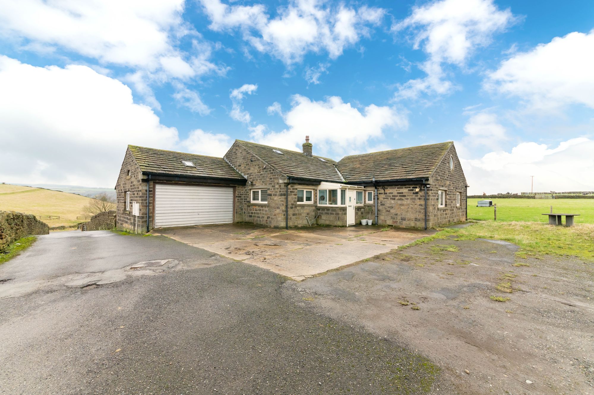 'HIGHWAY' IS A PARTICULARLY SPACIOUS, DETACHED, STONE BUILT BUNGALOW, OCCUPYING A STUNNING POSITION OFF OF SANDYGATE, SCHOLES. OFFERING SPACIOUS ACCOMMODATION, COMPLIMENTED BY A PARTICULARLY SPACIOUS PLOT EXTENDED TO APPROX. 1.6 ACRES OF FIELD AND GROUNDS. BOASTING BREATHTAKING, PANORAMIC VIEWS ACROSS THE VALLEY, THE PROPERTY HAS FANTASTIC WALKS ON THE DOORSTEP, IS IN CATCHMENT FOR WELL REGARDED SCHOOLING AND CONVENIENTLY POSITIONED FOR ACCESS TO COMMUTER LINKS. The property accommodation briefly comprises of utility porch, shower room, breakfast kitchen, inner hallway, lounge, formal dining room, conservatory, three double bedrooms and the family bathroom. Externally there is a courtyard and driveway providing off street parking for multiple vehicles leading to the attached double garage. The gardens and grounds are predominately lawn with a flagged patio area ideal for alfresco dining. There are two spacious attics with drop-down ladders giving access to useful loft spaces with lighting, power and skylight windows. EPC: C COUNCIL TAX: E TENURE: Freehold