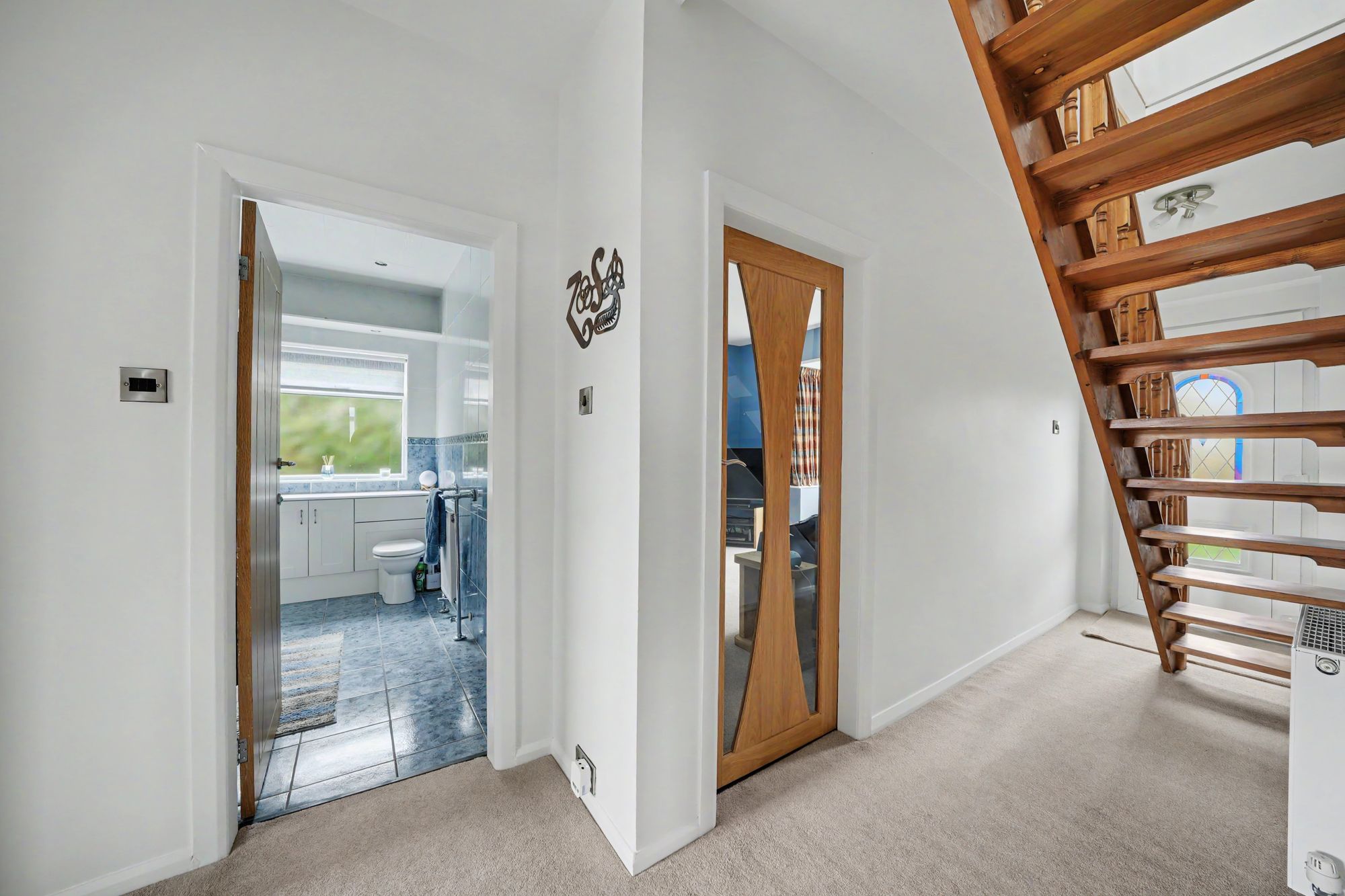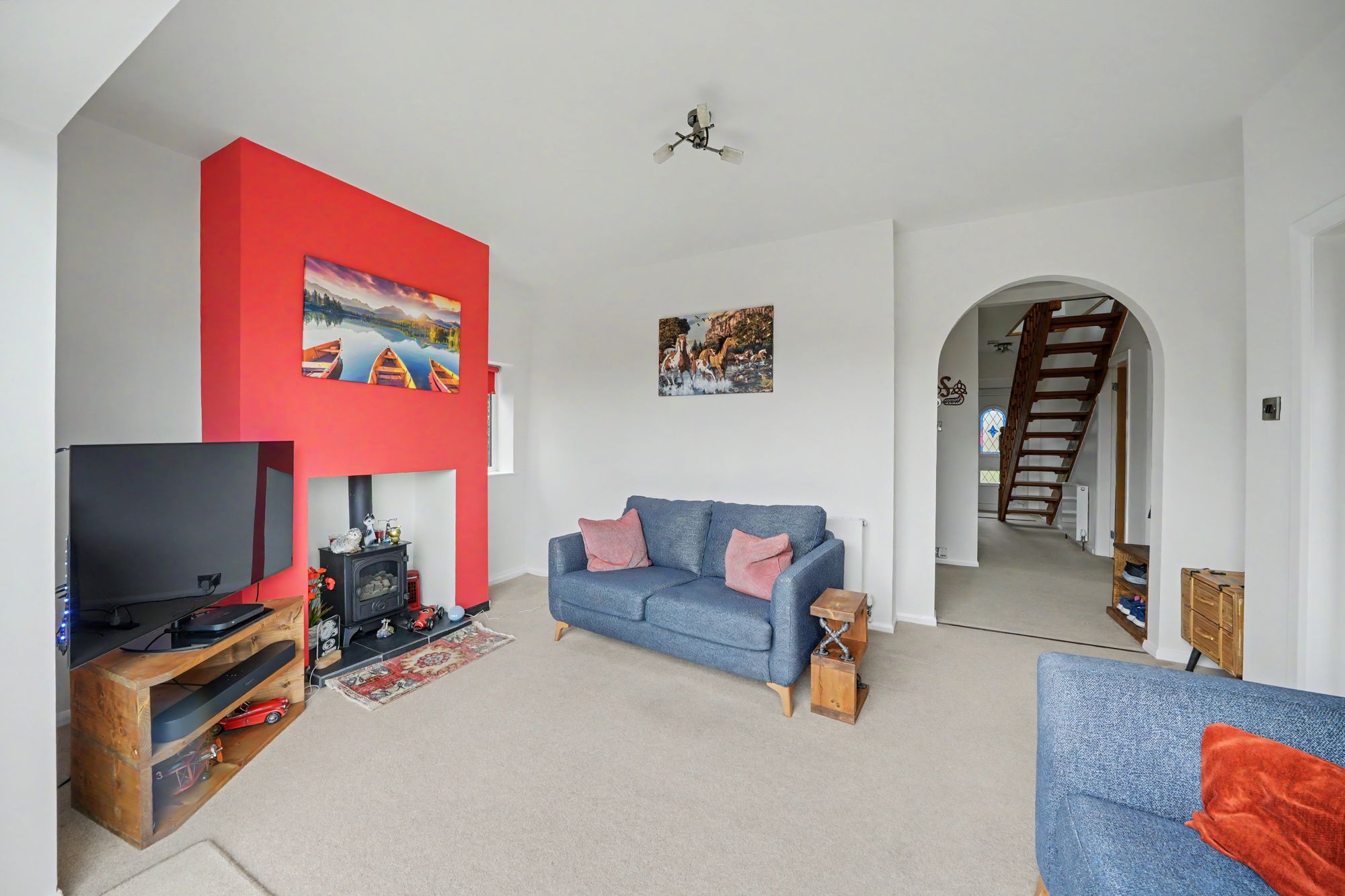 With a uPVC frosted and leaded stained-glass door, there are two ceiling light points, central heating radiator and to one side a pine spindled open tread staircase rises to the first floor. From the hallway access can be gained to the following rooms: -