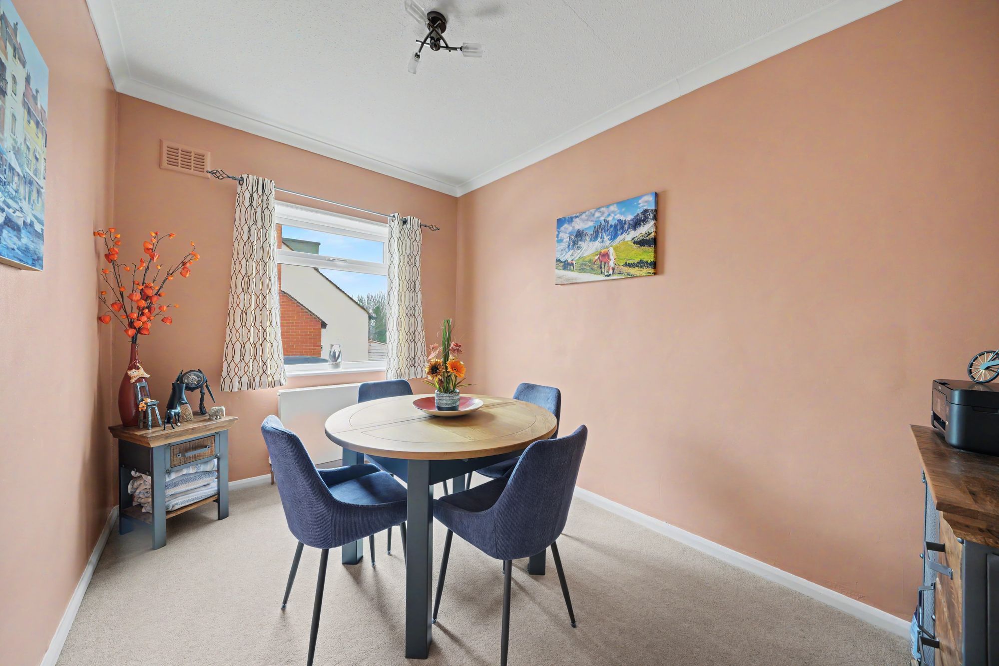 A versatile and well-proportioned room which has a walk-in bay with uPVC double glazed windows looking out across the front garden and enjoying far reaching views to one side. In addition there is further natural light from a uPVC double glazed window to the side elevation, there are two wall light points, central heating radiator and a wall mounted flame effect fire.