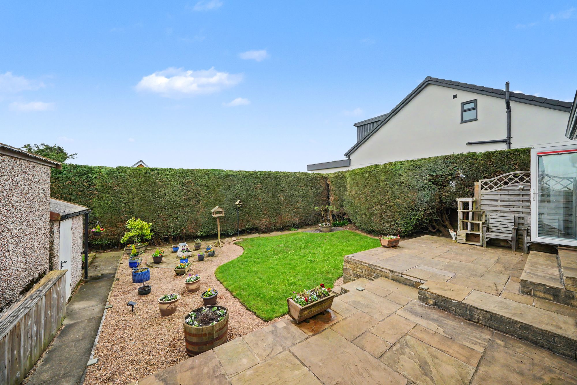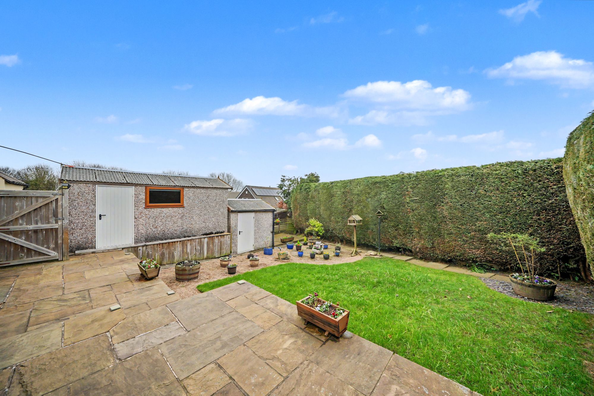 Externally a driveway to one side leads to a single garage with electric up and over door together with gardens to front and rear. The rear garden is well screened and includes a garden store with power and light.