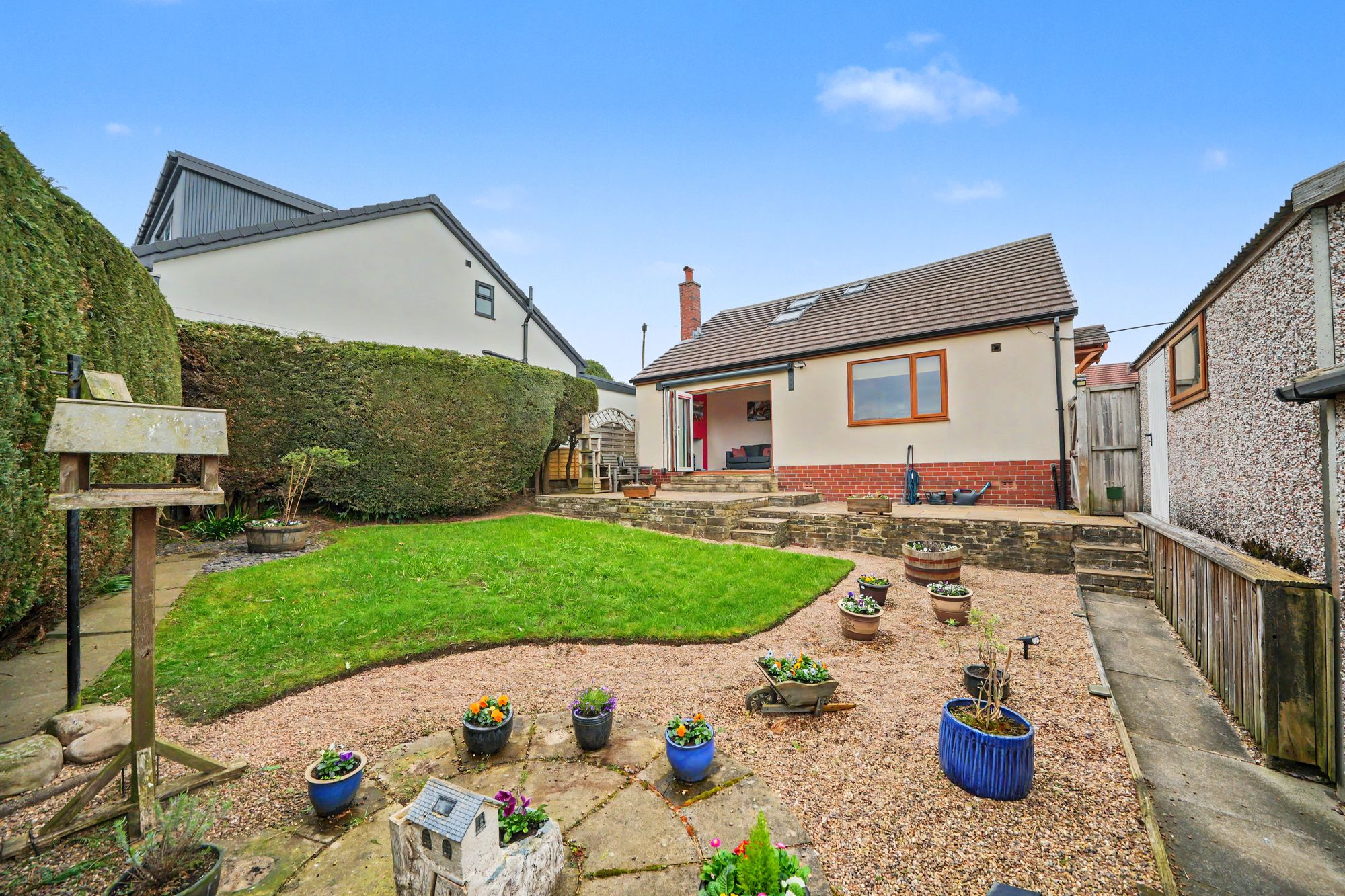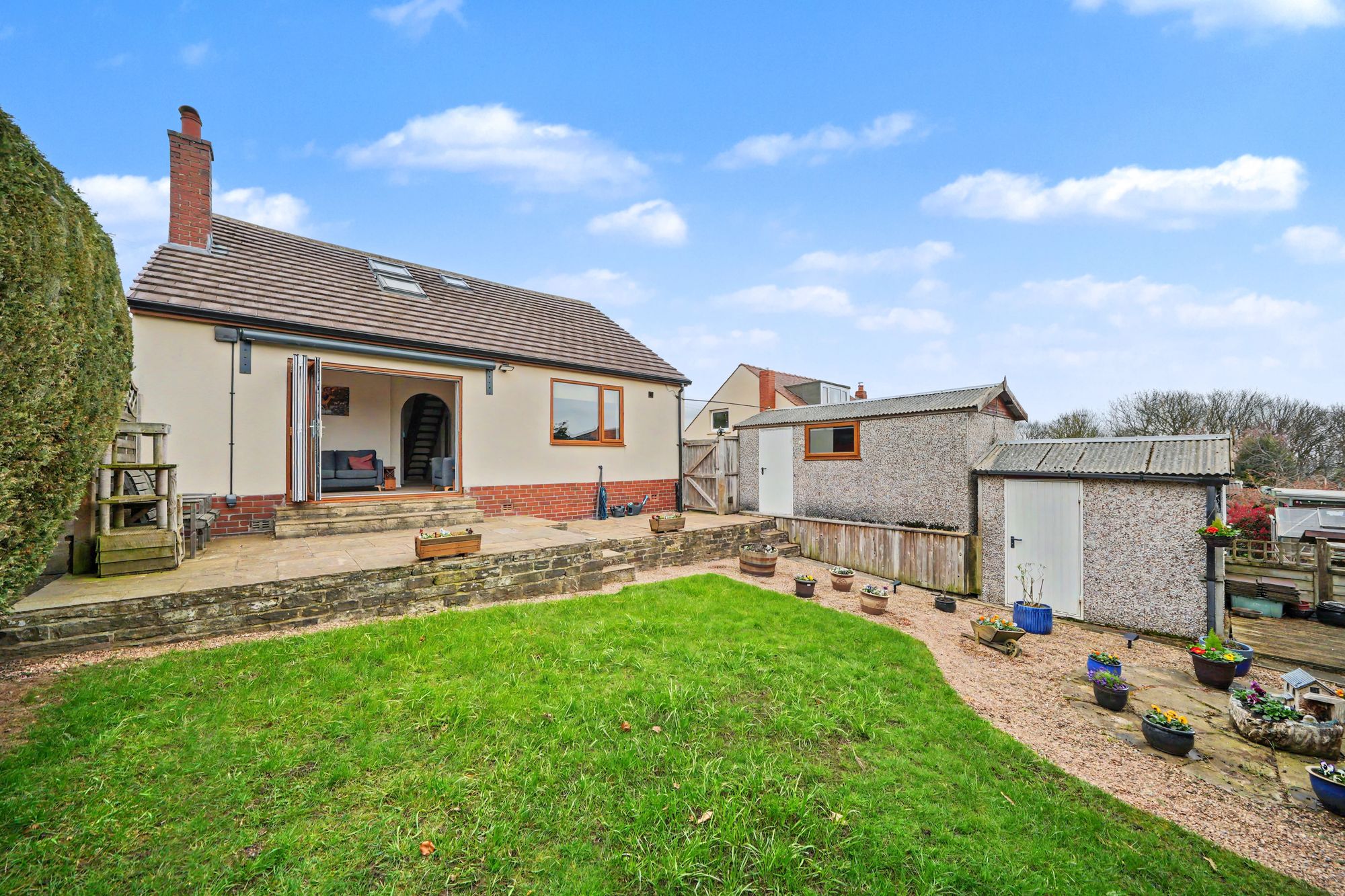 An appealing double fronted detached bungalow offering versatile living space including two large attic rooms one of which has a shower room off.