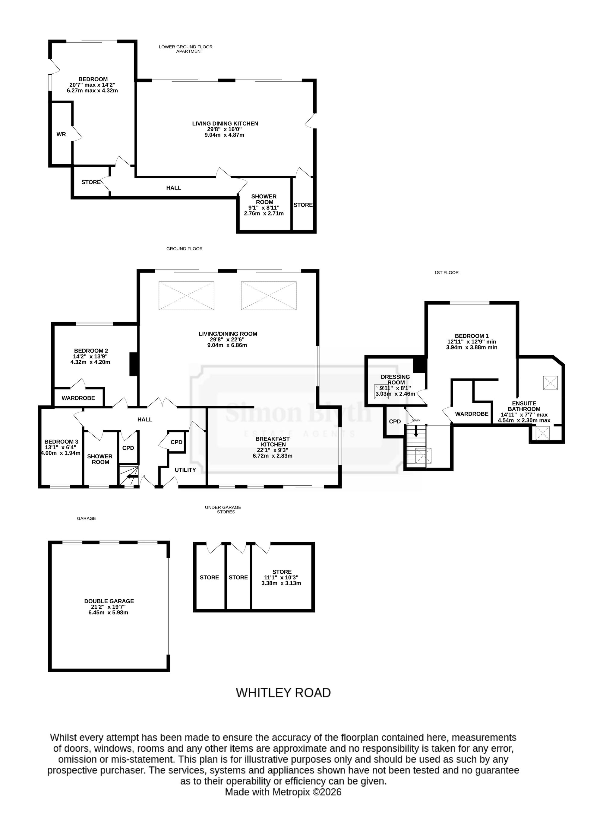 The shower room features a modern contemporary three piece suite which comprises of a fixed frame walk in shower with thermostatic rainfall shower head and separate handheld attachment, a broad winged wash hand basin with vanity drawers beneath and a chrome monobloc mixer tap and a low level W.C. with concealed cistern and push button flush. There is attractive timber effect tiled flooring, beautiful marble effect tiled walls, inset spotlighting to the ceiling and an extractor fan. Additionally, there is a tall ladder style chrome radiator and a double glazed bank of windows with obscure glass to the front elevation.