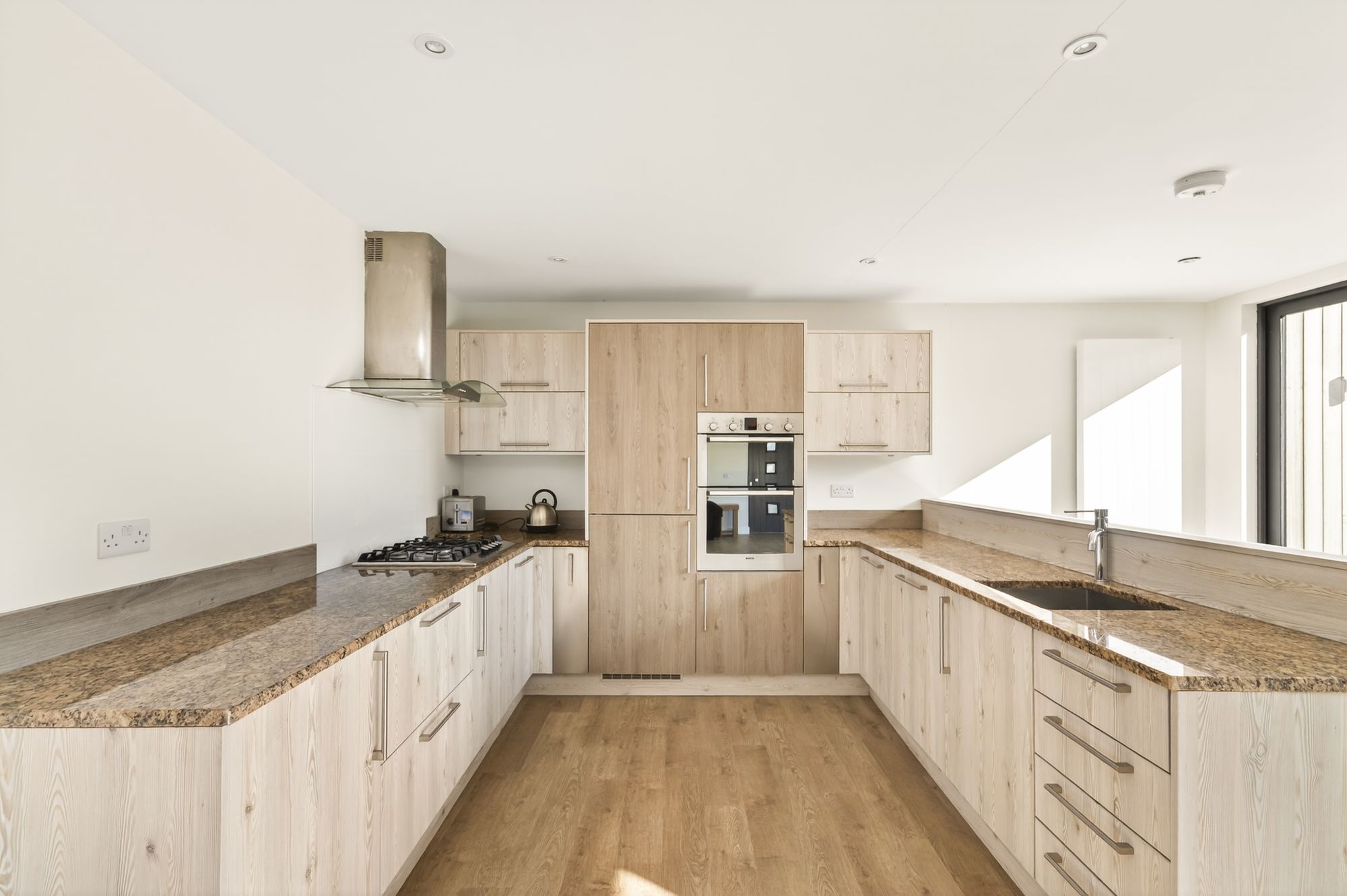 INNER HALLWAYThe high quality flooring continues through from the open plan dining kitchen and family room into the inner hallway which has an oak door providing access to the shower room and doors providing access to a fabulous double bedroom with generous walk in wardrobe and enclosing a boiler room which houses the wall mounted combination boiler for the lower ground floor accommodation.