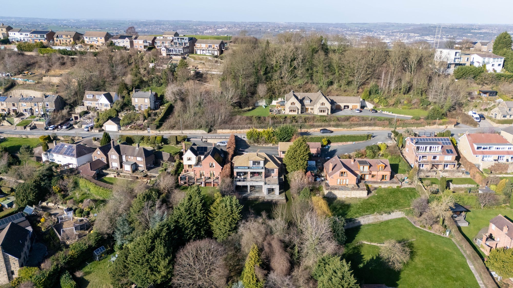 A MOST STUNNING, DETACHED, FAMILY RESIDENCE OFFERING SPACIOUS AND VERSATILE ACCOMMODATION ACROSS THREE FLOORS AND BOASTING PANORAMIC, UNINTERRUPTED VIEWS ACROSS THE VALLEY. SITUATED ON WHITLEY ROAD, CONVENIENTLY POSITIONED FOR ACCESS TO MOTORWAY LINKS, WITH PLEASANT COUNTRYSIDE WALKS ON THE DOORSTEP AND LOCATED IN CATCHMENT FOR WELL REGARDED SCHOOLING. 'TREE TOPS' (INSERT PROPERTY NAME HERE) OFFERS IMPRESSIVE OPEN-PLAN DINING-KITCHEN AND FAMILY ROOM, SUN TERRACE OVERLOOKING THE VALLEY AND SELF-CONTAINED ANNEXE ACCOMMODATION TO THE LOWER GROUND FLOOR.