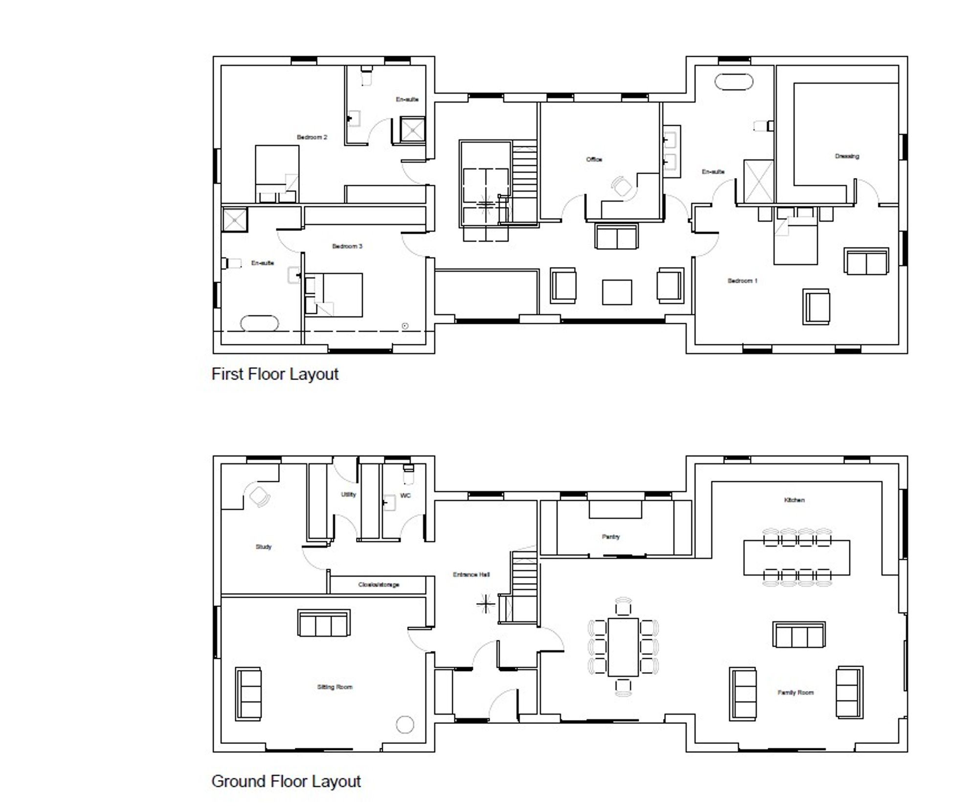 Bedroom one being exceptionally large with stunning views, huge adjoining dressing room and very large en-suite. Bedrooms two and three, once again, are very large double bedrooms with huge en-suites. Bedroom four is drawn as a home office due to the size of the home, this could easily be bedroom four and can be served by an en-suite if required.