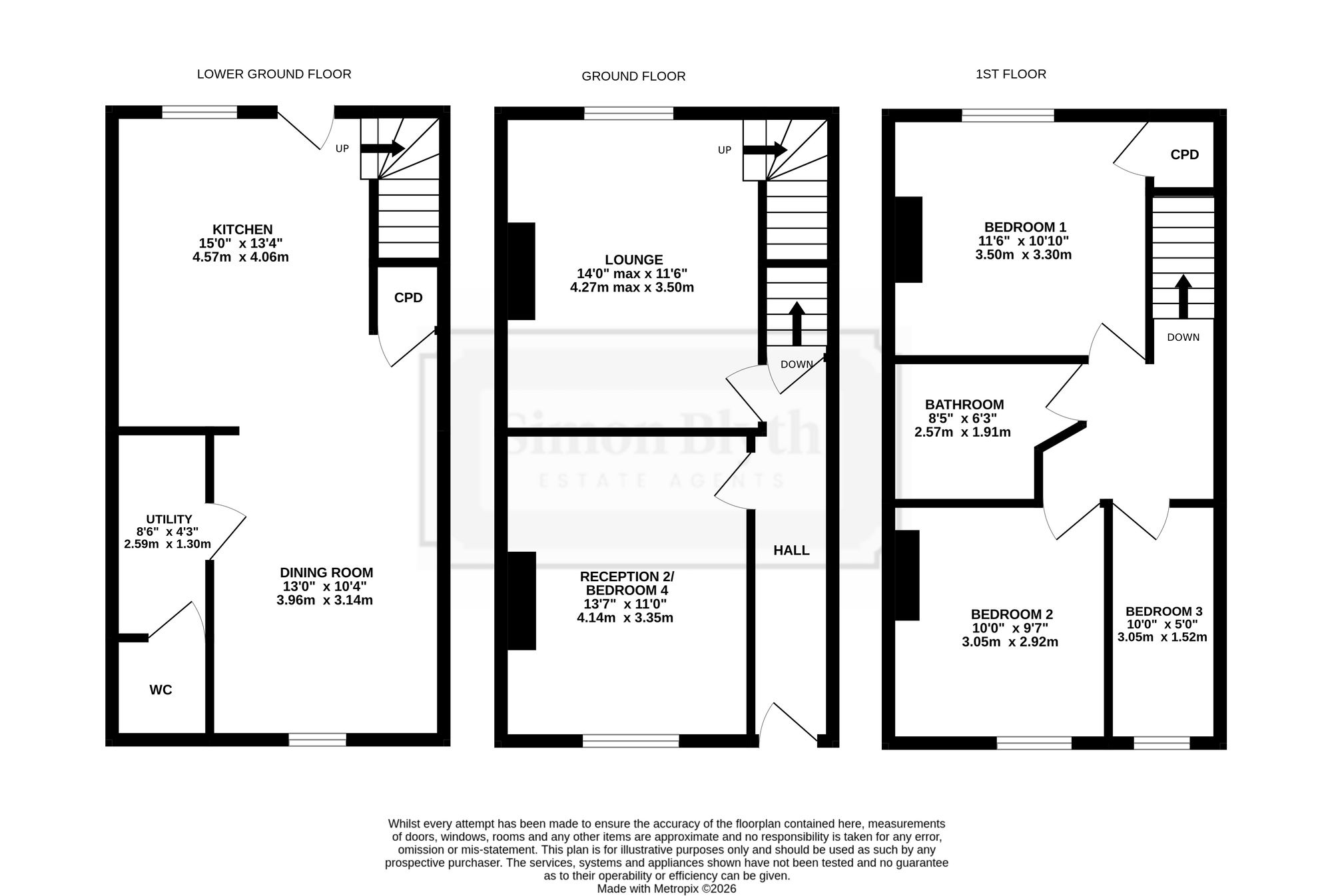 UTILITY ROOM8' 6" x 4' 3" (2.59m x 1.30m)