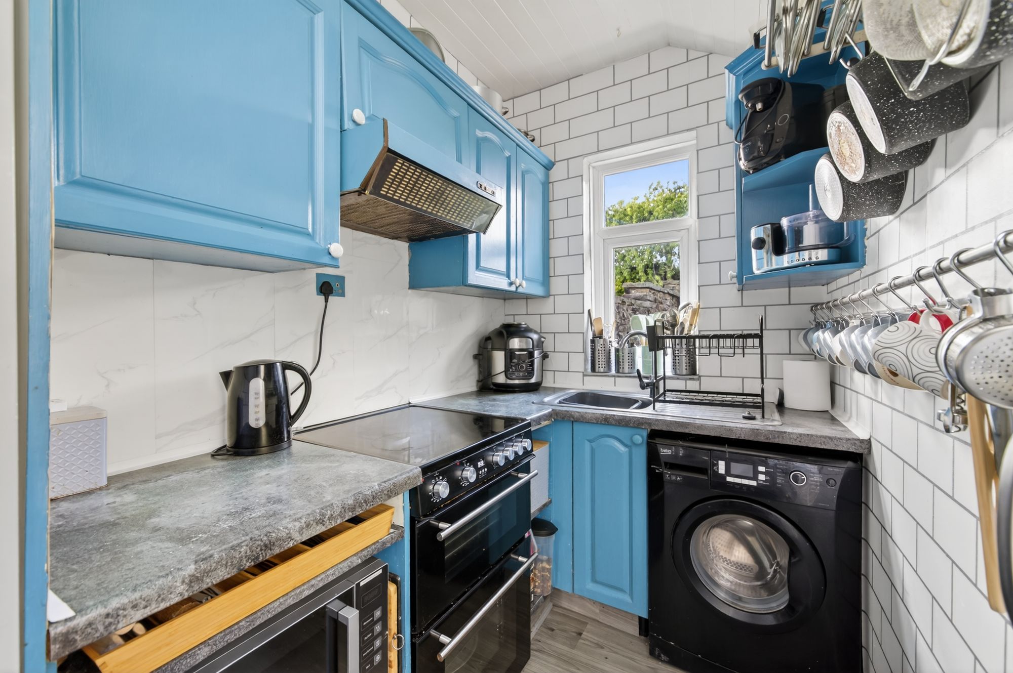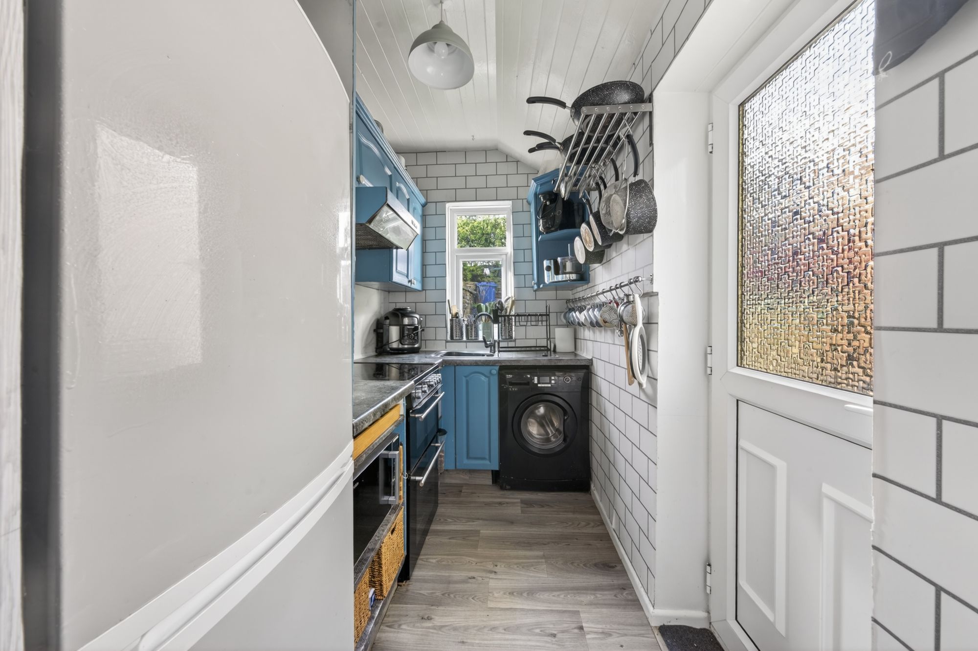 KITCHENFitted with a range of wooden wall and base units in a shaker style, complemented by laminate worktops. There is space for a cooker with an extractor fan over, space for a fridge freezer, and plumbing for a washing machine. The room has a ceiling light, a uPVC double glazed window to the rear, and a uPVC glazed door providing access out to the garden.