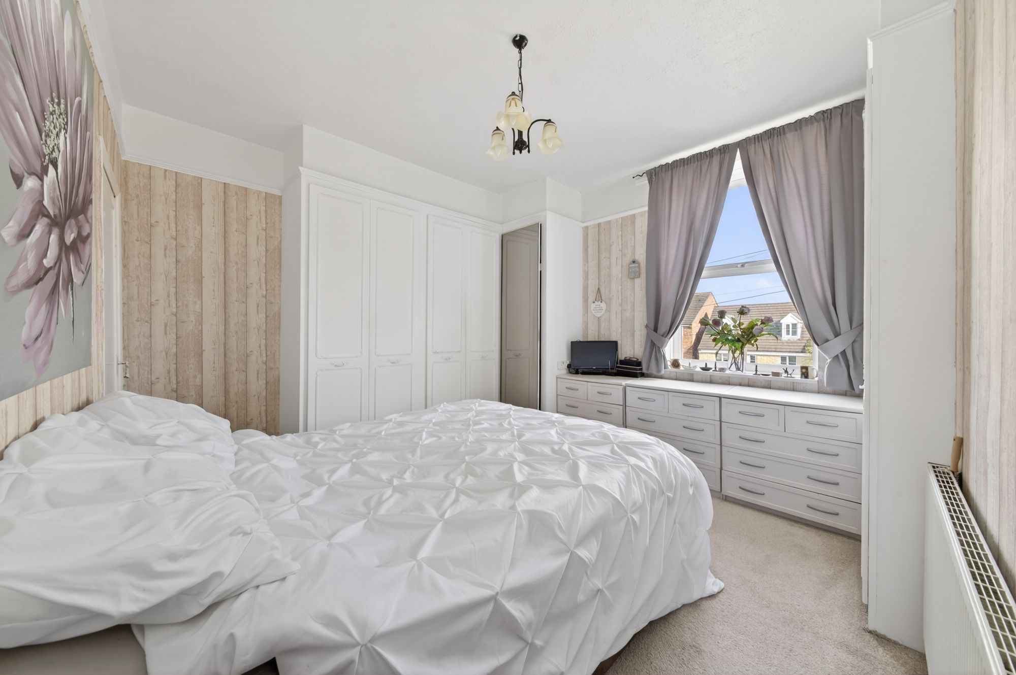 BEDROOM ONEA spacious front-facing double bedroom, featuring a ceiling light, central heating radiator, and a uPVC double glazed window to the front elevation. The room benefits from fitted wardrobes as well as a built-in cupboard and also houses the property’s boiler.